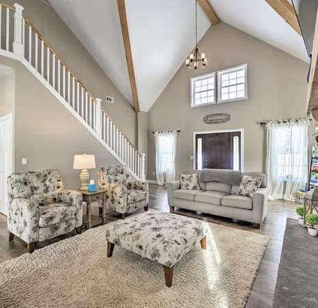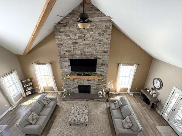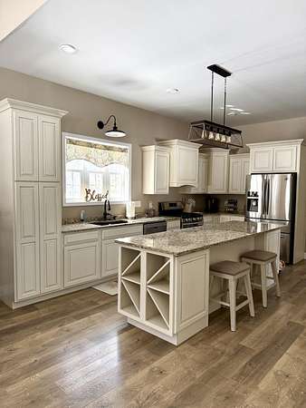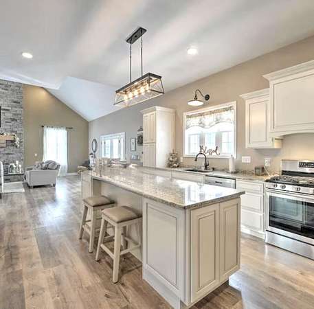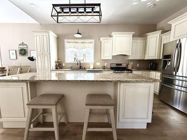 - Breakfast Bar, Cathedral Ceiling(s), Double Vanity, Granite Counters, Kitchen Island, Open Floorplan, Recessed Lighting