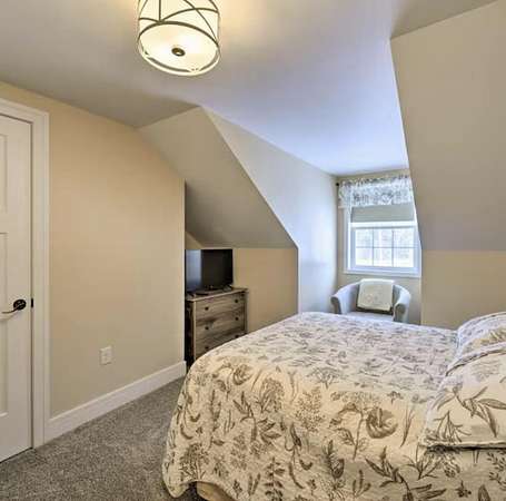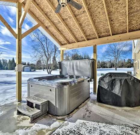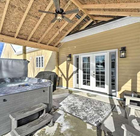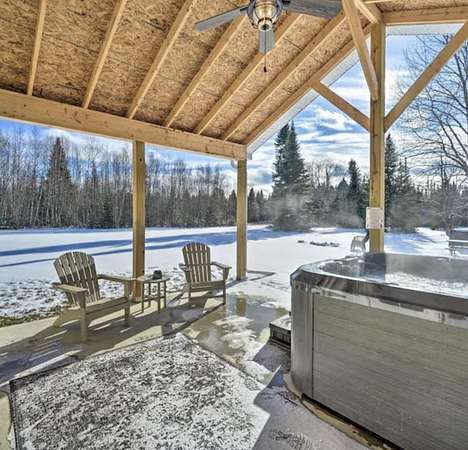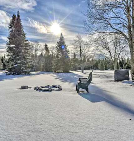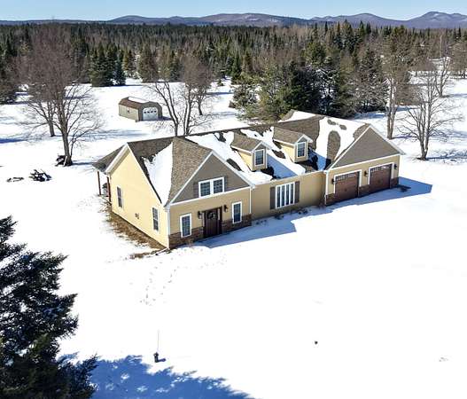 Set just off the road in Owls Head, this 3 bedroom 2 bath home is a modern Adirondack retreat built in 2018 on a 2 acre lot with room to breathe and space to play. With 2,150 square feet across two levels, it features a beautiful gourmet kitchen, a dining room, and a cozy living room with vaulted ceilings and a stunning gas fireplace perfect for gatherings and relaxing. The main floor includes a primary bedroom and full bath. Upstairs you will find two additional bedrooms and another full bath with plenty of space for family or guests. A laundry room and heated two car garage add convenience, especially during the winter months. The home is equipped with propane forced air heat, on demand hot water, a whole house generator, and a full house water treatment system. Both the house and garage have been spray foam insulated, adding to the home's overall efficiency and comfort. Outside you can enjoy the private patio, soak in the hot tub, or gather around the fire pit under the stars. There is ample space for trailer parking making it ideal for snowmobilers and outdoor enthusiasts. The location is excellent, just 1/8 mile from the main snowmobile trail, 500 feet from the Trailside Bar and Restaurant, and only 8 minutes to Titus Mountain. Hiking, fishing, and all season Adirondack adventures are right at your doorstep. Whether you are looking for a full time home or a seasonal getaway, this property offers space, comfort, and a prime Adirondack location.