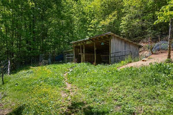 Beautiful property bordering Pisgah National Forest. This is the first time this property has been on the market and has been in this family since the early 1900's. This 8.51+- acre property is partially cleared with several acres fenced for goats. It has been used as a Tree farm and still has some trees on site. There is an underground stream that feeds a small reflection pond on one side of the property and a running stream/creek on the other side providing gravity fed irrigation and fresh water. Hike to the back of the property and find yourself in the Pisgah National Forest. This property can be used for a Tree farm, raising goats, a family compound, an RV park or a private estate. The possibilities are truly endless, with the Pisgah National Forest bordering the back of the property, privacy abounds and is secure. The property is ideal for development if desired as it is not severely sloped, mostly cleared and has 2 access points from Shoal Creek.