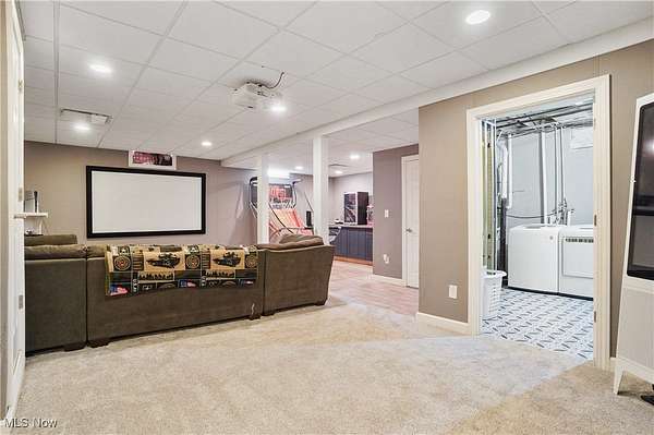 Country Charm plus HEATED DETACHED GARAGE FOR WORKSHOP, CRAFTS OR HOME BASED BUSINESS. IMPECCABLY REMODELED Colonial on 1.59 Acres with Detached Heated Garage! Move-in ready and packed with extras. Beautifully remodeled & maintained 4-bed, 2.5-bath Colonial on a quiet dead-end street in a private development. The open-concept main floor features an oversized kitchen with KraftMaid cabinetry, epoxy countertops, custom lighting, newer appliances, and reverse osmosis system. Seamlessly flowing into the dining and family rooms, this main living area invites connection and comfort. The dining area showcases a stylish accent wall and designer lighting, while the cozy family room is anchored by a gas fireplace, perfect for chilly evenings. Stylish sliding barn doors offer flexible use of the main floor layout including the living room/home office for today's modern family. Enjoy engineered hardwood, waterproof LVT, and newer carpet throughout creating both beauty and durability. Upstairs you will find the bedrooms and 2 bathrooms including the ensuite master bathroom. Downstairs, enjoy your own private home theater and recreation space with soundproofed walls, a projector screen, dry bar, and plenty of room to play, work, or unwind. Storage abounds with a raised crawlspace and a large laundry/utility room. Outside, relax in the backyard oasis with your fenced yard, hot tub, covered patio, and large deck (swimming pool & playground will be removed). Two garages: an attached 2-car and Car enthusiasts, hobbyists, or entrepreneurs will appreciate the Bonus detached 2-car which is heated & insulated with 220V power and three large windows-ideal for a workshop, home business, gym, or creative studio. Generac whole-house generator (2013), new concrete driveway & walkways, and a 1-year home warranty included. Don't miss this opportunity to own a truly exceptional home in a desirable location-schedule your private showing today!