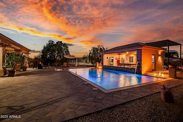Priced under a recent appraisal, acreage with horse facilities, a pool, and no HOA restrictions - Let that sink in. Acreage like this doesn't come up in this area anymore. Period. We're talking 2.5 acres of pure, unrestricted freedom in Hendricks Estates with mountain views, k, zero HOA telling you what you can and can't do, and space that's becoming extinct around here. This is the property you've been manifesting during those late-night Zillow spirals when you filter for ''land'' and nothing good ever shows up. Well, here it is. Horse people, this is your dream: irrigated arena, two stalls with water, year-round green pastures with full irrigation, mature shade trees, and fruit trees. Whether you've got two horses or ten, this setup is legit and ready for you. Not a horse person? The The acreage alone is gold. Dual RV parking with 50-amp hookups, 3-car garage, and total freedom to do whatever you want with your land. Inside, you've got a split floorplan with four bedrooms, updated kitchen, brand new Trane AC units, and modern finishes throughout. The backyard is where the magic happens: newly resurfaced Pebble Tec pool with LED lighting and dual fire pits, plus a custom pool house with fireplace, pool table, TV, and kitchenette. This is resort living on your own private acreage.