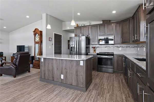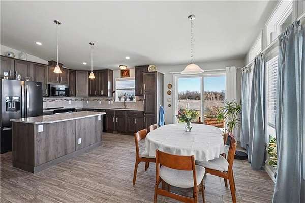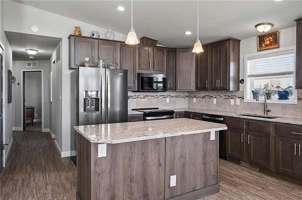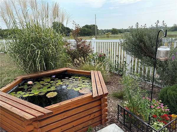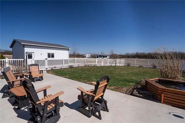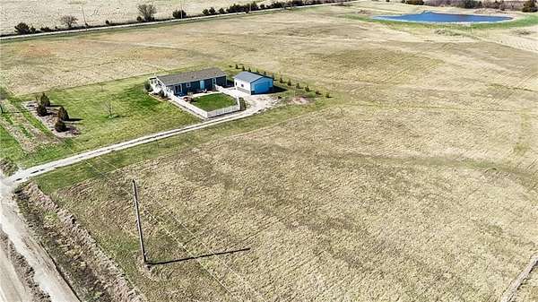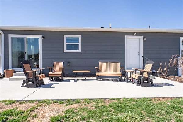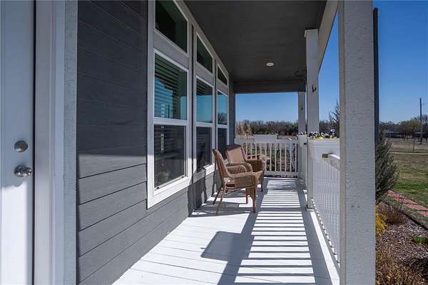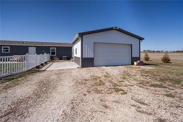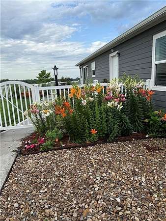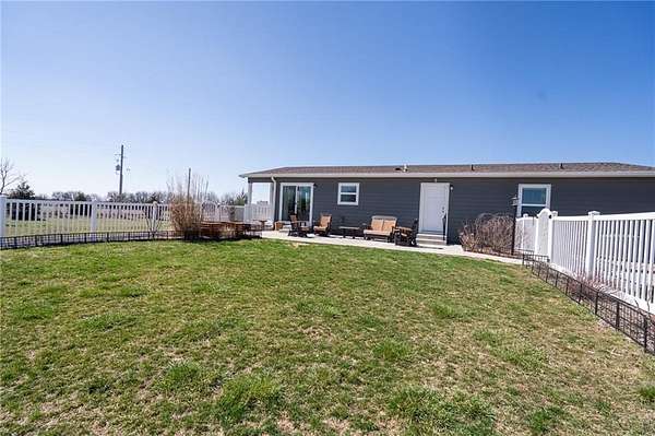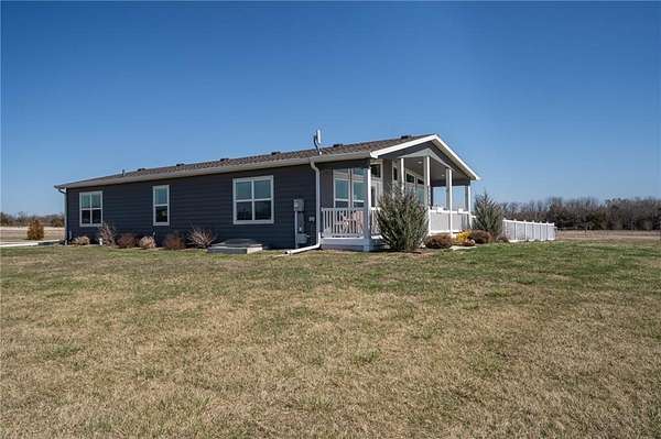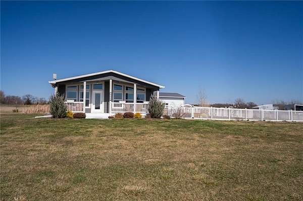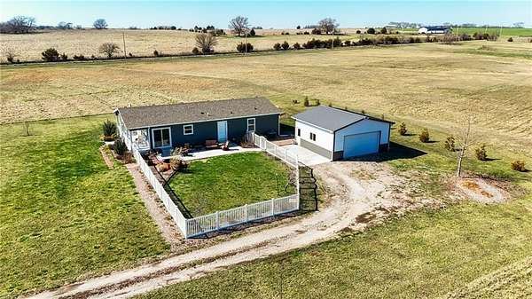 Such a nice move-in ready, charming home on 5 acres in the Vinland Valley area sitting along the historic Sante Fe Trail! Make sure to check out the video tour!!! Just 3 miles from downtown Baldwin City and 15 minutes from Lawrence. Imagine sitting on the covered front porch sipping coffee or ice tea on the patio in the beautiful landscaped fenced yard. This 2020 high quality modular home provides 1560 sq feet of comfortable living with 3 bedrooms and 2 bathrooms. Walk into the open living space with a vaulted great room, dining area and well-appointed kitchen including a huge island. Stainless appliances, quartz countertops, and lovely cabinets makes this a kitchen you will enjoy cooking for family and friends. The primary suite provides space to relax, a large beautiful bathroom and walk in closet. Need more space? Check out the full basement set up for finishing and egress window allowing for a 4th bedroom. The home is surrounded by amazing landscaping with numerous native perineal plants, peonies, hydrangeas, over 400 gorgeous Asiatic Lilies and much more! A lovely 600-gallon water garden will stay, if desired! Your own private oasis! The 24 x 24 detached garage provides plenty of room for two cars as well as storage. Looking for more acreage??? Check out the adjacent 12 acre parcel available - MLS#2555700. Or want family or friends as your neighbor? Check out the contemporary home on 17 adjacent acres with a barn and two outbuildings - MLS#2606653. Please note that county records are incorrect - this is a high quality modular home, not a manufactured home.