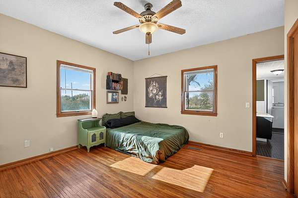 COUNTRY ACREAGE CLOSE TO TOWN! Welcome to this nicely updated 1.5 story farmhouse sitting on 5 acres M/L! You'll absolutely love the countryside views that surround you! Right from the start, this spacious 3 bed/2 bath home welcomes you right in! The living room features a fireplace and has great flow to the kitchen! The updated kitchen has fresh paint, abundant storage, pantry closet & dining area! The main floor features a huge primary bedroom with double closets, hardwood floors & ensuite bath with dual sinks! The bath also provides quick access to the main floor laundry/mudroom area! The upstairs offers 2 more bedrooms & a 3/4 bath! Main floor laundry! There's a small utility basement area accessed via floor access door that stores mechanicals! Outdoors there's a large yard, pasture area & space for you to do almost anything you want - NO COVENANTS APPLY! There are two garages, pole building & an outbuilding with a few partial stalls - plenty of room for parking, animals, storage, work space and/or whatever you're up to! BRAND NEW SEPTIC SYSTEM TO BE INSTALLED! Located just south of Knoxville & close to Pella, Monroe, Newton, Oskaloosa, Albia, Chariton, Des Moines area! All information obtained from Seller & public records.
