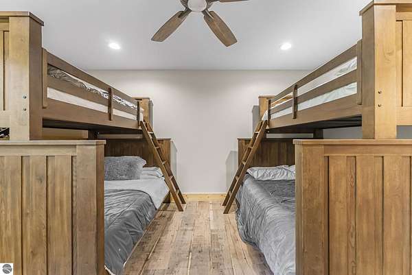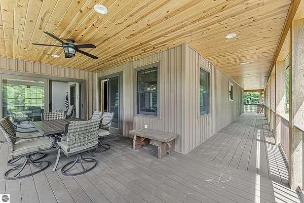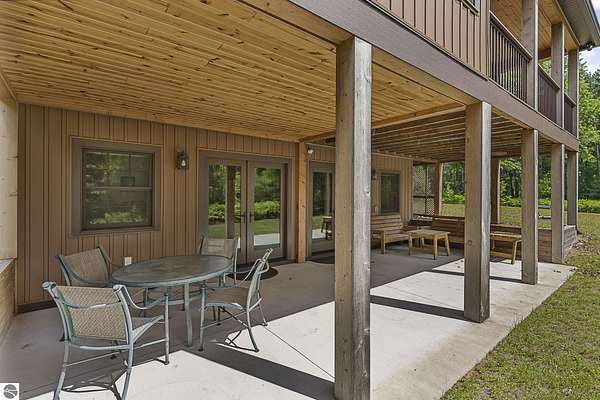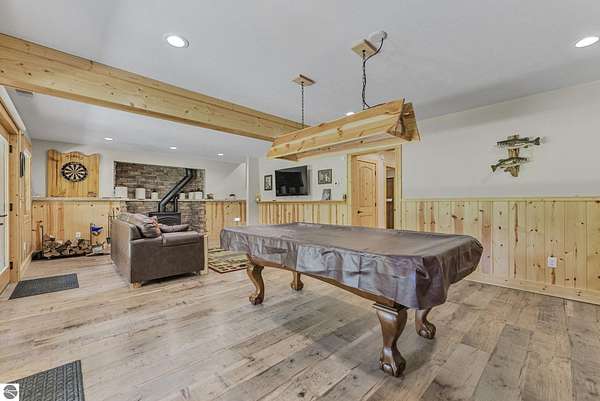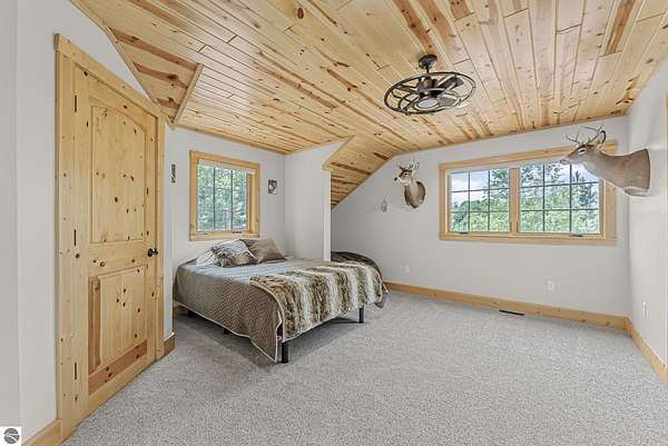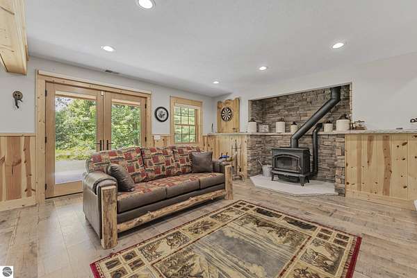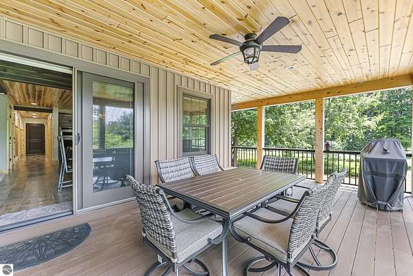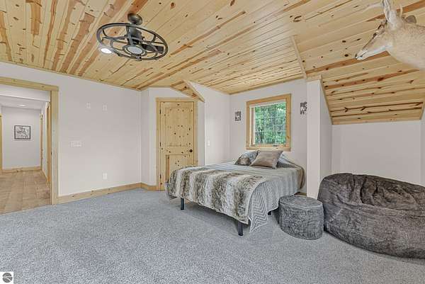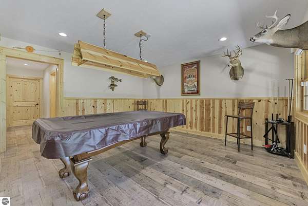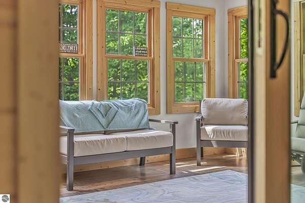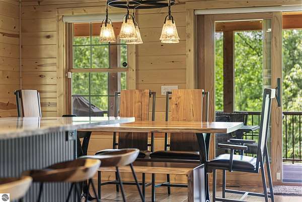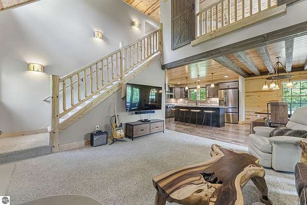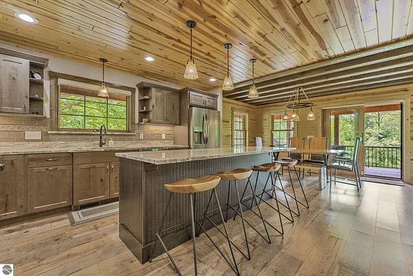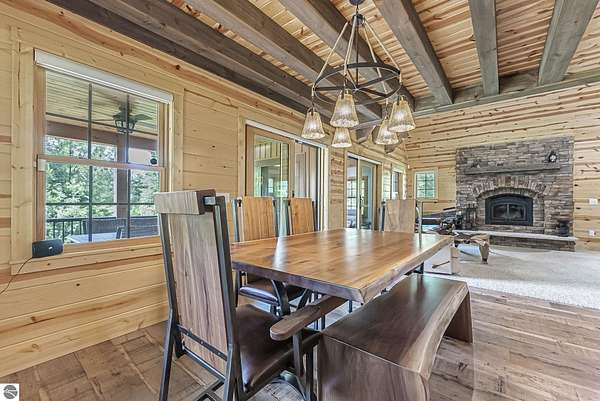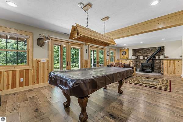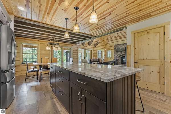 Surrounded by over 45,000 acres of pristine Michigan State land , this custom-built 2019 home in Lake Ann is the ultimate "up north" retreat. Whether you're seeking a year-round residence, seasonal escape, or recreational haven, this 5 bedroom, 5 bath home offers unmatched privacy and outdoor opportunity-ideal for hunting, hiking, ORV riding, snowmobiling and more. This is so thoughtfully designed from a main floor covered deck and a beautiful three-season sunroom that offers both the feeling of bringing the outside in as you relax and enjoy the quiet nature views in a covered living space. Solid pine doors, ceilings and trim detail will grab your attention the minute you enter this beautiful home as every inch exudes warmth and craftsmanship. The elegant quartzite countertops thorough-out elevate the aesthetic, blending the rustic charm with modern luxury. A stunning combination. Enjoy the custom kitchen, cozy up next to one of two fireplaces, or head downstairs to the finished walkout lower level with a pool table area and large second family living space perfect for entertaining. This is set in a truly remarkable location with endless recreational potential, offering peaceful serenity when you need to get away, style and adventure all in one.