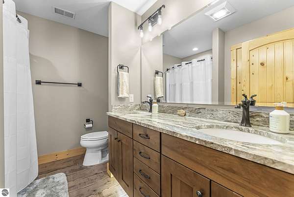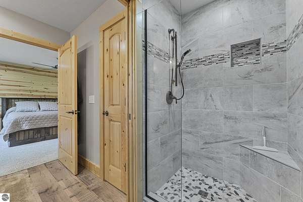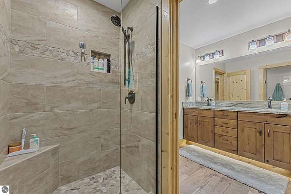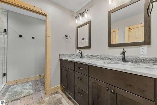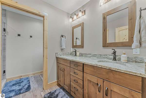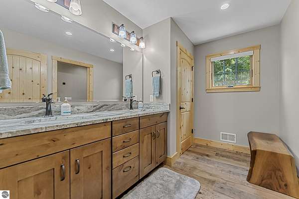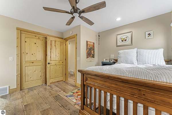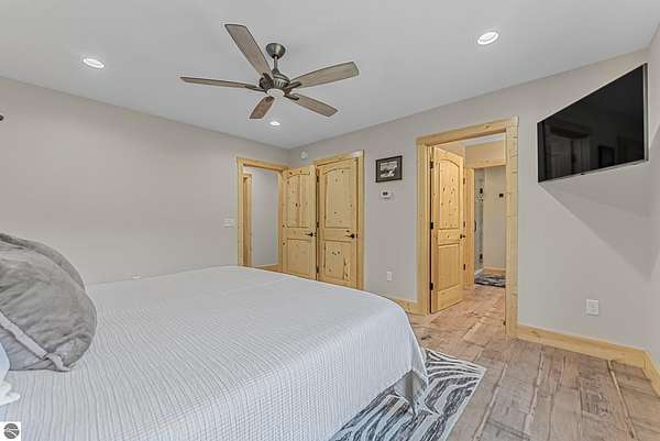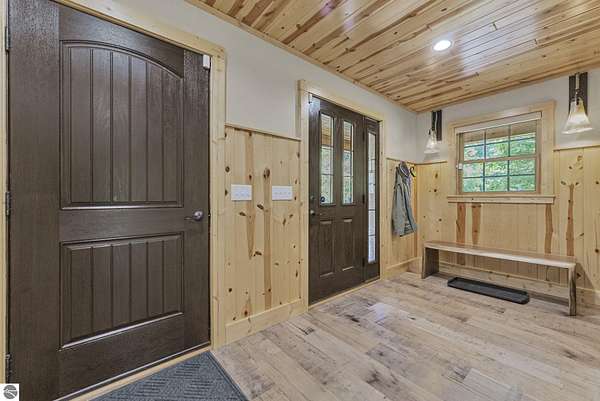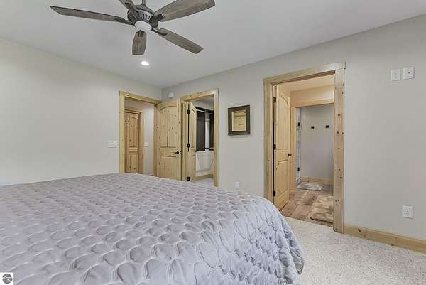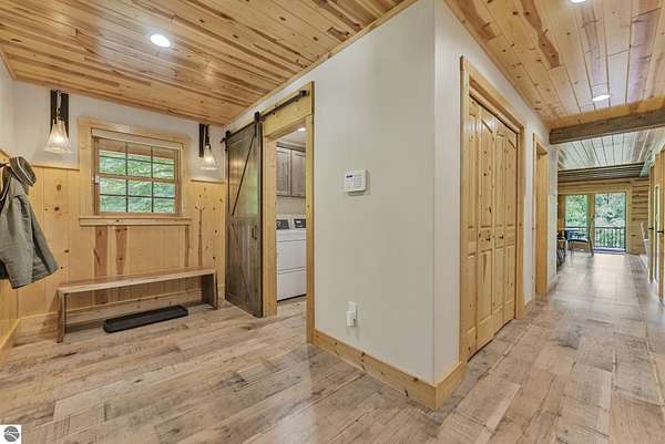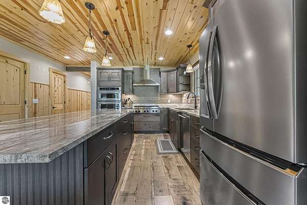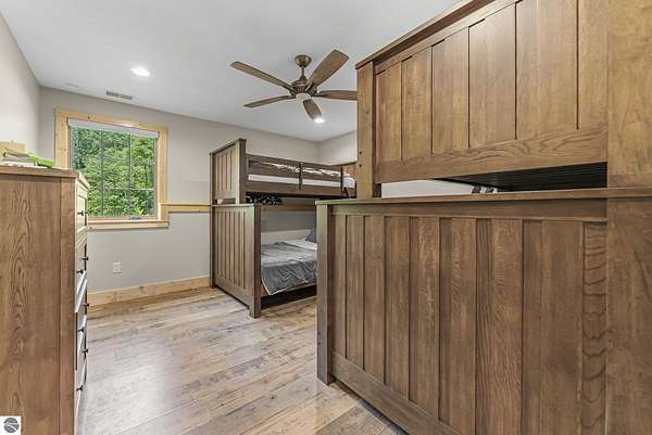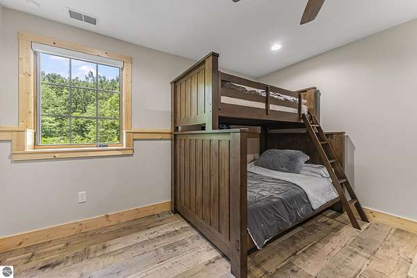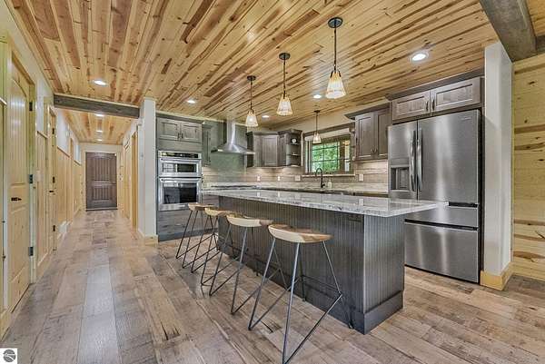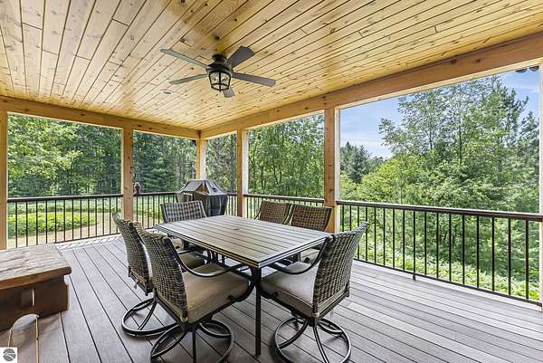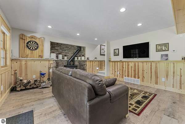 Surrounded by over 45,000 acres of pristine Michigan State land , this custom-built 2019 home in Lake Ann is the ultimate "up north" retreat. Whether you're seeking a year-round residence, seasonal escape, or recreational haven, this 5 bedroom, 5 bath home offers unmatched privacy and outdoor opportunity-ideal for hunting, hiking, ORV riding, snowmobiling and more. This is so thoughtfully designed from a main floor covered deck and a beautiful three-season sunroom that offers both the feeling of bringing the outside in as you relax and enjoy the quiet nature views in a covered living space. Solid pine doors, ceilings and trim detail will grab your attention the minute you enter this beautiful home as every inch exudes warmth and craftsmanship. The elegant quartzite countertops thorough-out elevate the aesthetic, blending the rustic charm with modern luxury. A stunning combination. Enjoy the custom kitchen, cozy up next to one of two fireplaces, or head downstairs to the finished walkout lower level with a pool table area and large second family living space perfect for entertaining. This is set in a truly remarkable location with endless recreational potential, offering peaceful serenity when you need to get away, style and adventure all in one.