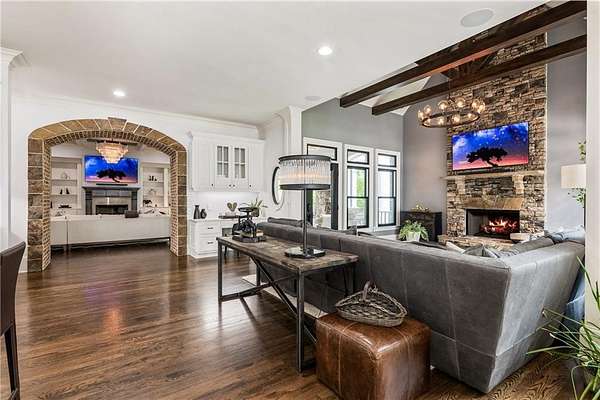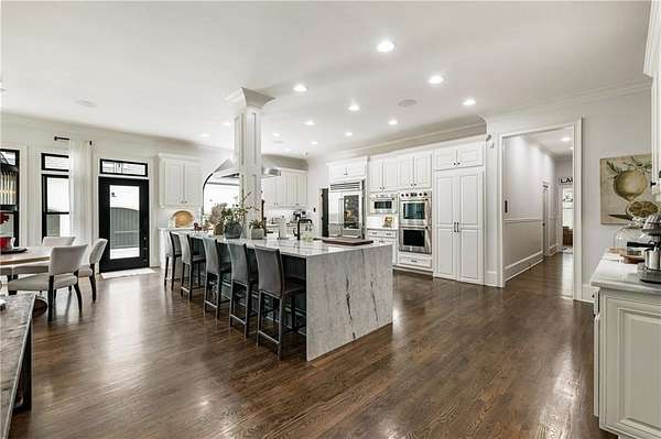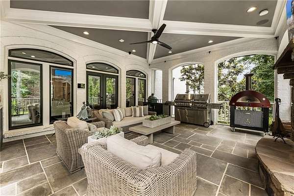 Experience unmatched elegance and modern innovation in this spectacular seven-bedroom, seven-and-three-half-bathroom estate, privately nestled on 7 acres in Milton. Behind a gated entry and circular motor court, this four-sided brick home stuns with show-stopping curb appeal, a newly installed DaVinci slate-style composite roof and new ProVia energy-efficient windows and doors throughout. Thoughtfully updated from top to bottom, this estate effortlessly combines luxury with everyday functionality. Inside, rich hardwood floors and intricate trim work set the tone for the refined interiors. The chef's kitchen is a true showpiece, featuring a massive waterfall island, top-of-the-line Wolf appliances, a hidden walk-in pantry, a full commercial prep kitchen and a beverage bar. A fireside keeping room with a cathedral ceiling and a sunlit breakfast room provide warm gathering spaces. French doors open to a covered veranda with electronic shades, an outdoor stone fireplace and views of the heated pool and spa, which are now enhanced with blue tile and a Hayward Pro Series sand filter. The main-level primary suite features a fireplace, a morning bar, dual walk-in closets with custom systems and a luxurious en suite bathroom with dual vanities and water closets. Upstairs offers four spacious en suite bedrooms and a craft room, all with soaring ceilings and fresh paint. The terrace level is an entertainer's paradise and includes a media room, a barrel-vaulted wine cellar with a custom cooling system, a billiard room with a hidden entry to a sports/game room featuring eight TVs, a golf simulator with a projector, a KaraFun karaoke system and a full gym. Additional upgrades include a Control4 smart home system with integrated Lorex security (including 12 additional cameras), a Honeywell alarm system, a whole-home Kohler 50-kilowatt backup generator and a 2-PSI Honeywell gas meter. A private guest suite with a separate entrance completes the terrace level. A carriage house above the garage expands guest options and includes a full-size kitchen, ample living space, a bedroom and a bathroom. Unique features include a complete custom armory with bulletproof walls, a Browning ProSteel vault door, a Browning ProSteel safe and black walnut cabinetry; a privacy smart glass door in the wellness room; a new custom laundry room with built-ins and storage; custom wine room cooling system; fresh paint throughout upstairs, main and basement levels; and custom closet systems throughout. Outside, enjoy a professionally designed landscape with extensive plantings, trails, steel edging, flagstone path and mulch. A large, fenced vegetable garden with raised beds and a tool shed await garden enthusiasts. For recreation, discover a 9-hole disc golf course on the property. The entire 7 acre perimeter is secured with an invisible fence, offering peace of mind and privacy. Located in top-ranked Birmingham Falls Elementary School, Northwestern Middle School, and Milton High School district and minutes from Scottsdale Farms, equestrian facilities, restaurants and more, this home offers the perfect blend of seclusion and convenience, with a beautifully updated interior, spacious living areas and room to roam both inside and out.