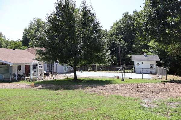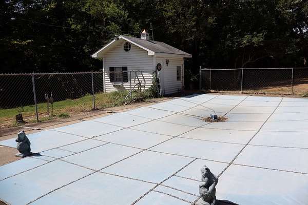 The home has so much to offer and is waiting for a little love to make another happy owner a new "home"! Four bedrooms, 2.5 bathrooms, formal living room, dining room, kitchen with a bar to the breakfast area, a sunroom all on the main level. Go up a few stairs to find a full bathroom, three bedrooms, a 3/4 bathroom in the primary bedroom and a hallway with three closets for "your stuff". Go down a few steps and you will find a bedroom, the laundry room with 1/2 bath off to the side, and another family room or an office with an area with a covered ceiling previously for a hot tub. The two-car garage also houses a storage room and a cooking area with a gas stove for outside cooking. Step out the back door to find a covered patio overlooking the salt-water pool and a cabana with its own toilet and shower so "pool guests" can have their own privacy. A 24 x 28 utility shop/barn and a 12 x 12 shed sit to the back of the property on the east side. Woods to the west side provide privacy.
