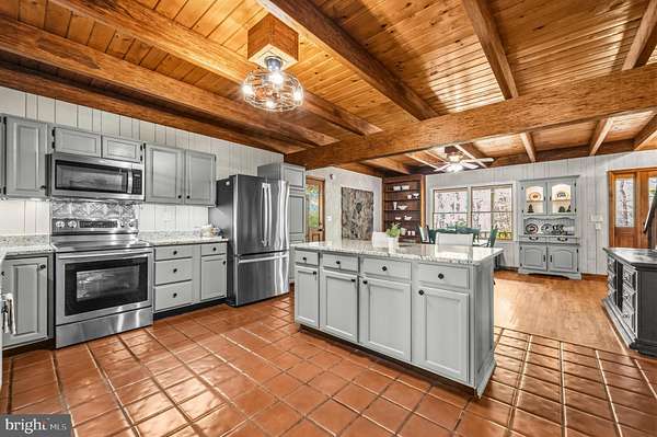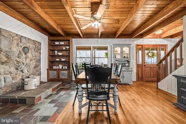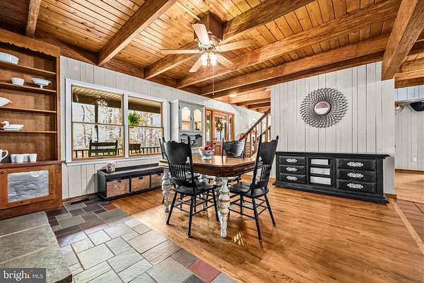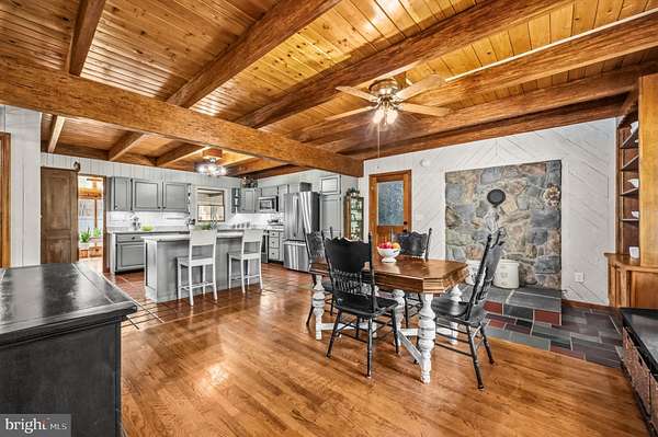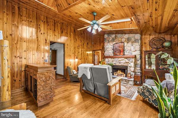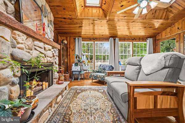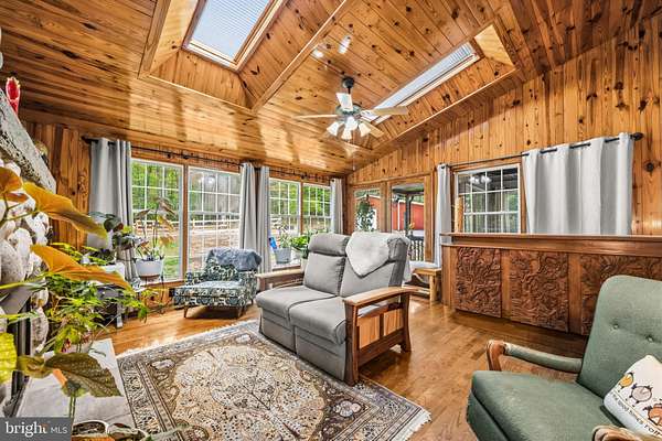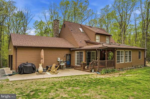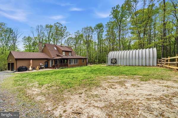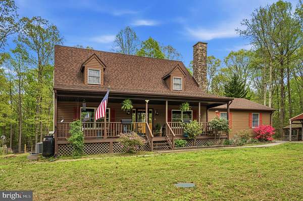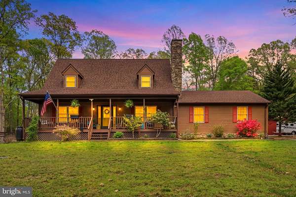 Welcome to this charming 3-bedroom, 2.5-bath single-family Cape Cod home built in 1992, offering approximately 2,042 square feet of living space on a generous 10-acre lot-perfect for those seeking privacy, nature, and room to roam. You can bring your horses, chickens, and goats as well. As you approach the home you will be immediately drawn to the spacious front porch, inviting you to rest in a rocking chair and soak up the peaceful atmosphere. When you step inside you will be greeted by rustic hardwood floors flowing throughout most of the main level, complemented by saltillo tile in the kitchen, and slate tile in the dining room. The thoughtful layout greets you with a formal living room on the left and a spacious dining room on the right, ideal for gatherings, and family dinners. It has provisions to install a propane powered stove for alternative heating. The well-appointed kitchen features sleek granite countertops, a reverse osmosis filtration system under the kitchen sink with a drinking spout for filtered water, fashionable gray cabinets, and stainless steel appliances. The stove is electric, but there is the possibility of a propane hookup. Adjacent to the kitchen is a versatile sunroom/family room with a cozy gas fireplace, cathedral ceilings with wood paneling, skylights, and direct access to the backyard and relaxing hot tub (as-is) - creating an inviting space for year-round enjoyment. A convenient laundry area, a half bath, and ample closet space add everyday practicality on the main floor. The highlight is the luxurious primary suite with soaring cathedral ceilings, skylights for natural light (with remotely operated electric blinds), warm wood paneling, and a walk-in closet. Upstairs, two large bedrooms await, each enhanced by wood paneling and skylights for an airy feel, along with multiple closets. A full bathroom adds comfort and convenience to this level.. The attached two-car garage includes a slop sink, water heater, and a whole-home water filtration system, plus propane tank hookup capability to serve the kitchen stove. This secluded retreat on 10 acres boasts abundant wildlife, a large outbuilding perfect for storage or a workshop, as well as a horse barn for up to two horses. There is also a spacious carport and a gazebo. Most of the property is fenced, and divided into two separate horse corrals, but also suitable for chickens, goats, or a mini-farm-offering endless possibilities for outdoor enthusiasts. This home features double-hung windows and solid wood interior doors. One HVAC system was replaced in 2020, the other one in 2022. The refrigerator and the washing machine brand new in 2025. The culvert by the main road and the skylights in the primary bedroom were replaced within the last five years. Also, the toilets in the powder room and the upstairs bathroom were replaced recently. The dining room has a brand-new chimney insert which would allow for the installation of a wood stove in the dining room, if desired. Located just off Route 3 for easy commuting, yet peaceful and private, this home is a true oasis blending rustic charm with modern updates. Don't miss the opportunity to make this your countryside escape!