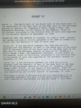 From Ave G-go 6/10ths mile north on 150th St E to Ave F6, then go east 2000 ft and south about 307 feet to the northwest corner of the lot at GPS Lat 34.7427 Lon-117.85667