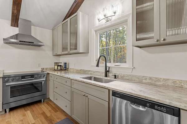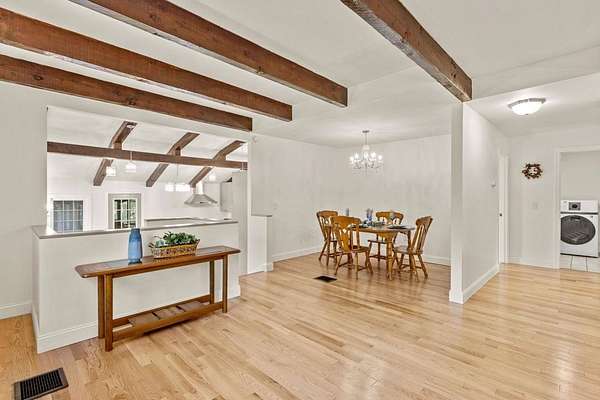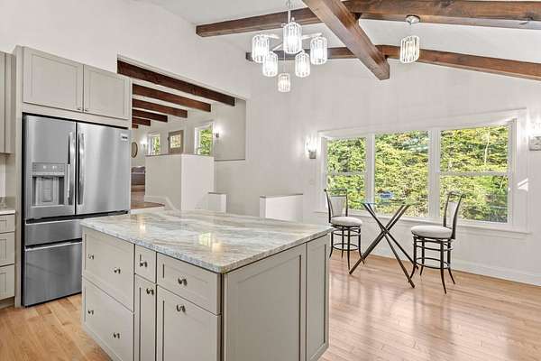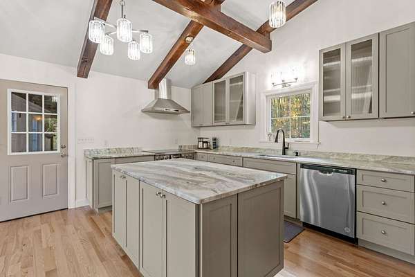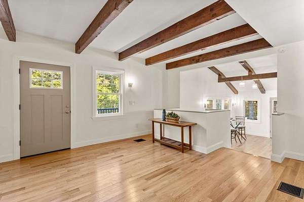 This showstopper of a home will end your search! Located in one of New Hampshire's most loved low-tax towns, this beautifully remodeled property abuts Moose Mountain and offers year-round outdoor enjoyment. Spend your days boating and fishing on nearby lakes or exploring scenic snowmobile and hiking trails. Quality craftsmanship and attention to detail shine throughout, offering a true wow at every turn. Inside, you'll find a custom kitchen with center island, hardwood floors, and a fireplaced living room with access to the deck. The spacious primary suite includes room for an office or wellness area, this area would also work well as an in-law suite that features its our enclosed porch. You'll love the 15x15 screened porch and mudroom that invites relaxation and easy entertaining. Upstairs features two large bedrooms with walk-in closets and a new full bath. Set on 3.17 acres, there's room for pets, gardening, or creating your dream landscape. A two-story, two-car garage provides space for a workshop, game room, or guest quarters. Discover Wakefield's charm, natural beauty, and welcoming community! A pleasure to show.