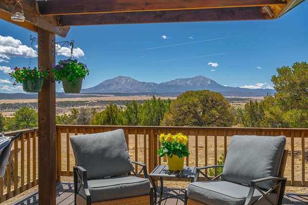 Glorious Views await from this stunning 1,332 sq ft retreat nestled on a beautiful treed 2.3-acre lot at the end of a quiet road & a fenced yard offering unmatched privacy and breathtaking mountain panoramas. Both the home and garage feature brand-new roofs, giving you peace of mind from day one. A cozy fireplace, sun-filled garden room, and spacious loft perfect as a family room or third bedroom make this home as versatile as it is charming. The master suite and guest room are both conveniently located on the first floor. A large detached garage completes the package. Minutes from Lathrop State Park for fishing and boating, a public golf course, Spanish Peaks Medical Center, and Cuchara Mountain Park Ski Village for year-round adventure. This is Colorado living at its finest. Call Today!