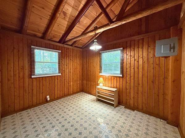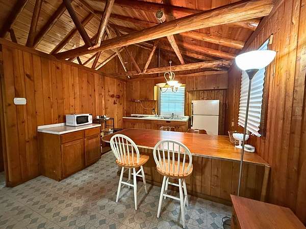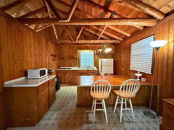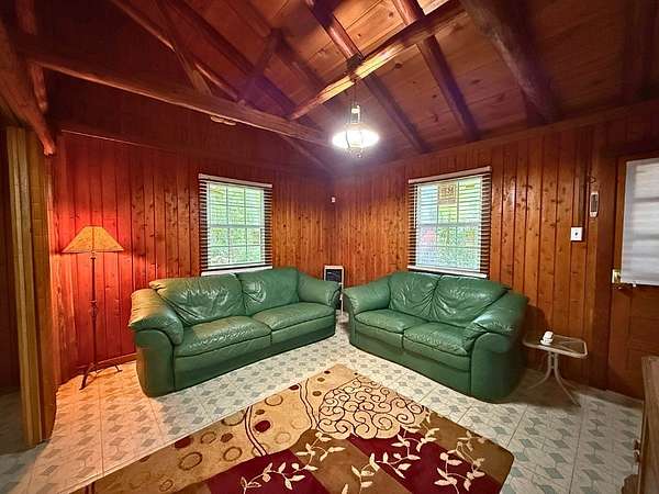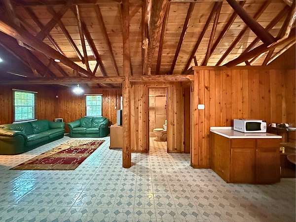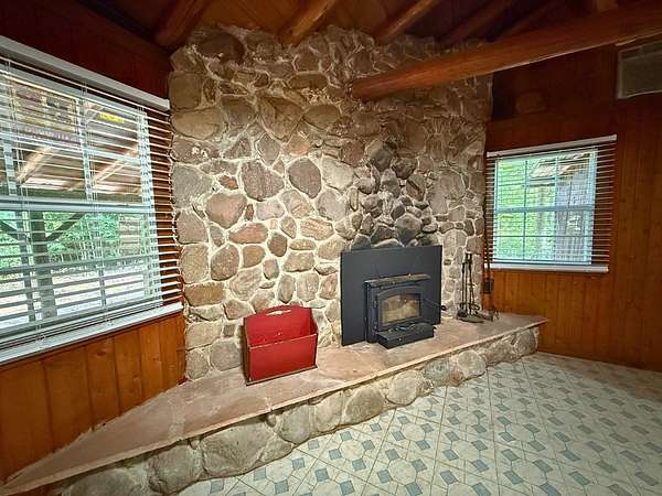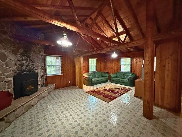 Charming log cabin on just under 2 acres with woods surrounding the home! Excellent weekend place to enjoy nature and the outdoors where a variety of native trees and plant life abound. The cabin features a modest kitchen and open floorplan with fireplace off the den along with a living room, full bathroom, and one bedroom. The living room can be blocked off for added sleeping space! Vaulted ceilings make the cabin airy and spacious. The cabin has been meticulously taken care of for many years and is ready for new family memories to take place on the property!
