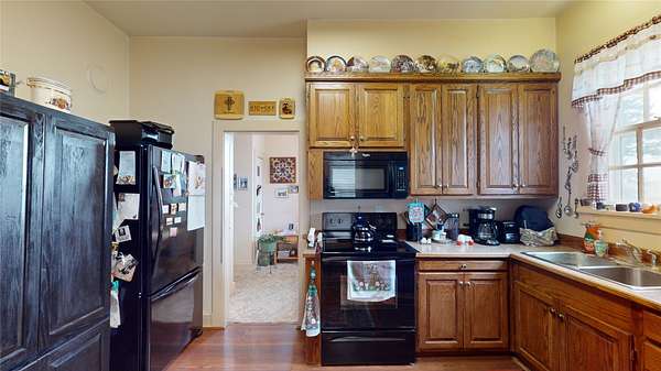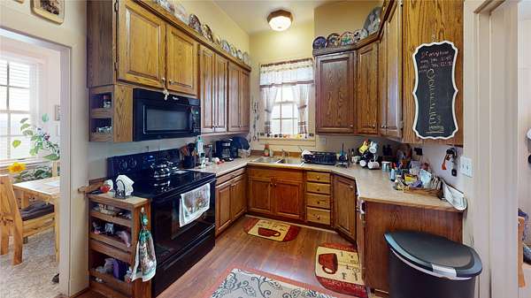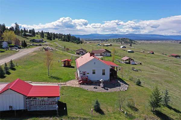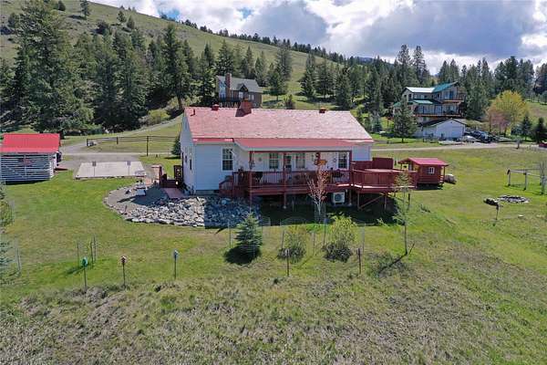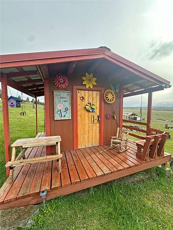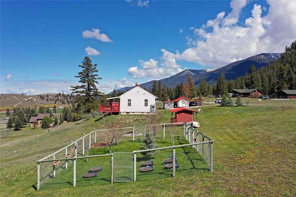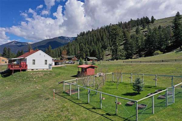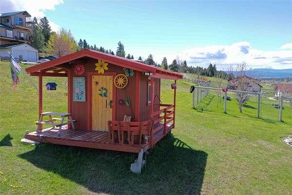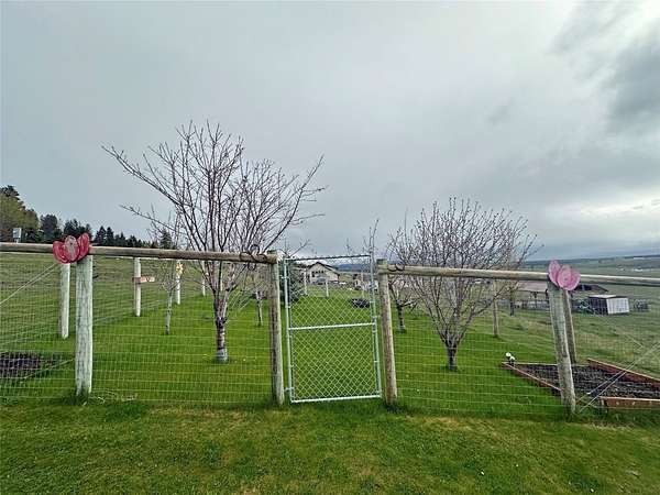 Perched at the crest of the rolling hills on the outskirts of the valley these mountain views will take your breath away! With over an acre of sprawling lawns & pasture land, this is the perfect place to settle into the simple life. The gently sloping property has been lovingly tended & is beautifully landscaped to enjoy the best of Montana. Complete w/ a fenced orchard of mature apple, plum & peach trees as well as raised beds for vegetables you will have the start to the perfect Montana homestead. The paved parking pad, oversized shed & covered wood storage make winter & yard work easy. Bask in the mountain skyline or enjoy a cold drink while you watch the wildlife meander across the property from your covered deck. The miniature playhouse is perfect for little guests who will love being outside. Upgrades include custom kitchen cabinets, a cozy fireplace & 9' ceilings.