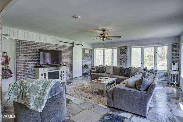 From Greeneville, continue on 11E, turn right on Broomstick Rd and left on Cobble Lane. Home will be at the end of the road.