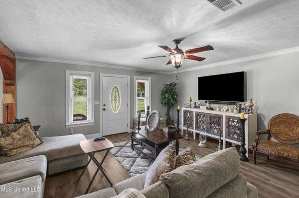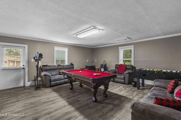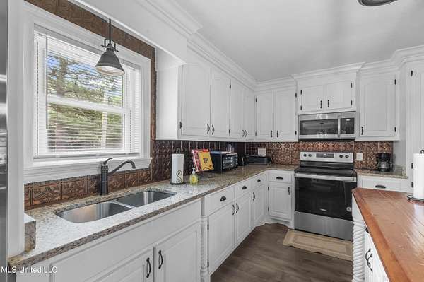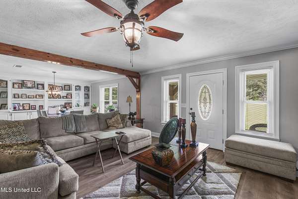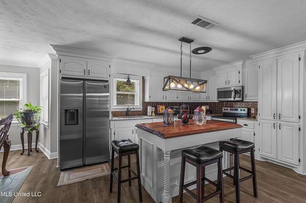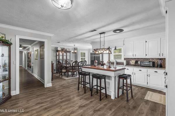 Welcome to Cobbville Mini-Farms! This charming 3-bedroom, 2-bath home sits on approximately 4 +/-acres and offers over 2,939 square feet of living space. Inside, you'll find a spacious living and dining area with beautiful laminate wood flooring, built-in bookcases, and wood beams that separate the two spaces.. The updated kitchen features granite countertops, stainless steel appliances, a kitchen island, and a cozy breakfast nook. The primary suite includes dual vanities and built-in bookcases. There's no carpet throughout the home. A large game room with a wet bar makes entertaining easy. Outside, enjoy a peaceful deck overlooking the acreage. The property also includes a barn with electricity and space for up to five stalls, a parking awning for vehicles, and an outdoor shed for extra storage. If you're looking for a quiet, country lifestyle with modern updates, this home is ready for you. Call to schedule a showing.