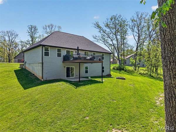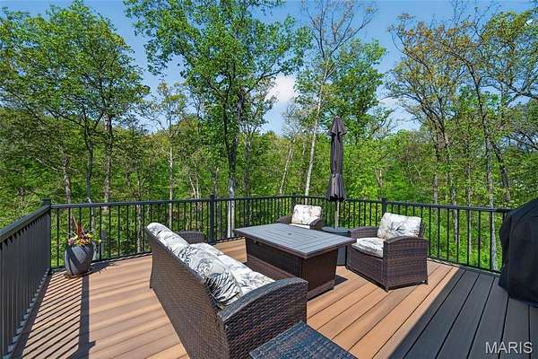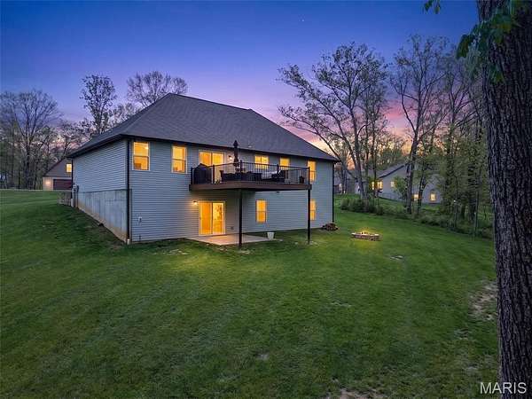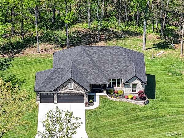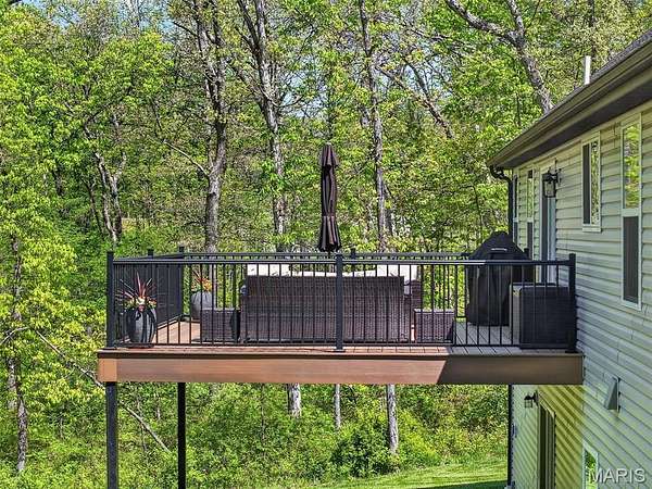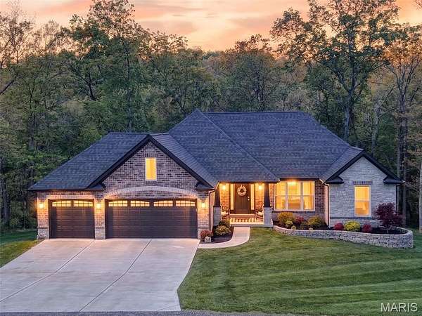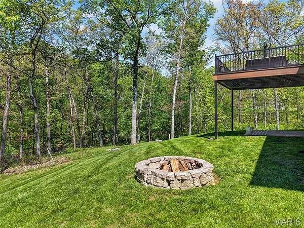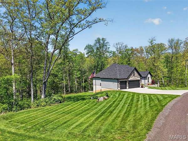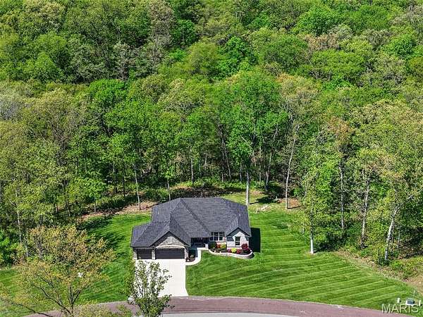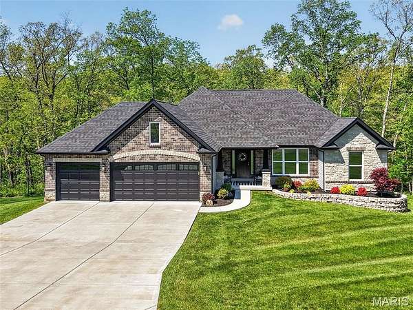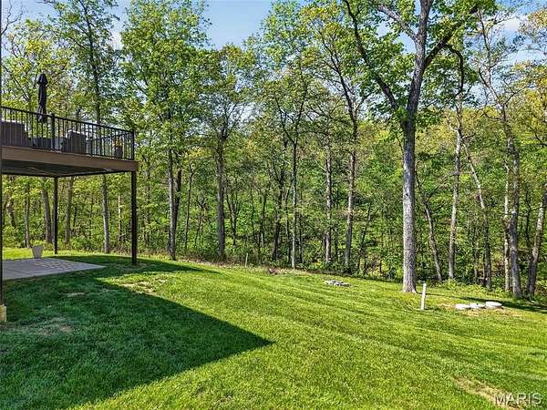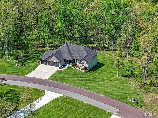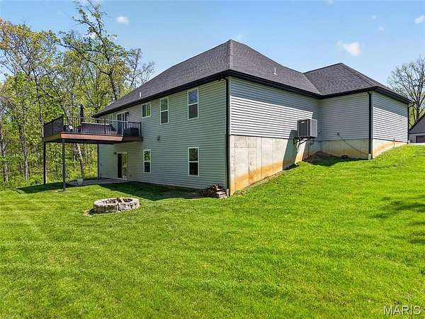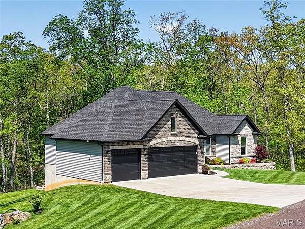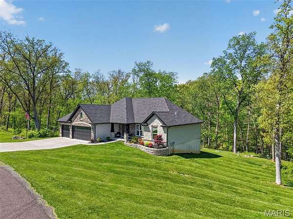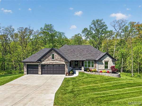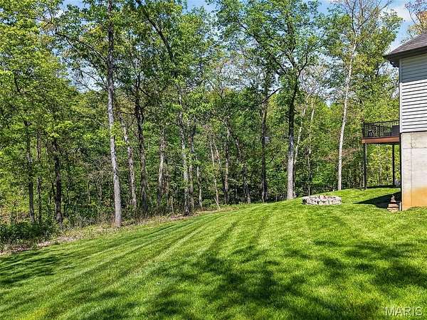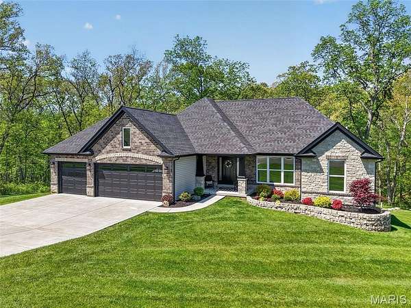 Tucked away on 3 private acres of tranquil, peaceful land in the desirable Bluffs At Eagle Fork community, this custom-built home offers a rare opportunity with the perfect blend of luxury, comfort, and seamless indoor-outdoor living. Thoughtfully designed and loaded with high-end updates, every detail has been crafted to elevate everyday living. As you arrive, you'll notice the meticulous care and detail of this home. From the upscale landscaping and retaining wall, to the gorgeous yard featuring an irrigation system with buried downspouts. Step inside to an open floor plan highlighted by soaring vaulted ceilings and luxury vinyl plank flooring that flows throughout the entire home, creating a cohesive and modern feel. The heart of the home is the chef’s kitchen, featuring sleek quartz countertops, stainless steel appliances, microwave drawer, hooded vent, and an expansive island—perfect for cooking, entertaining, and gathering. Designed with the sought after split floor plan, the private primary suite is set apart from the rest of the home and features a spa-like bathroom with an oversized zero entry walk-in shower. Two additional bedrooms are located on the opposite side of the home, offering comfort and privacy for family or guests. The living space extends effortlessly outdoors, where you’ll find a private setting with the impressive new composite deck supported by steel beams, complete with aluminum railing and ambient underlighting. The cozy firepit creates an inviting space to enjoy the serene surroundings. This lot is ideal for relaxing evenings or hosting guests. The walk-out basement adds additional versatility and easy access to the beautifully maintained exterior. Additional upgrades include a whole-house water filtration system, security cameras, water softener and so much more, ensuring convenience and peace of mind. This exceptional property combines modern luxury with natural beauty—offering a private retreat you’ll be proud to call home. It's time you LOVE WHERE YOU LIVE.
