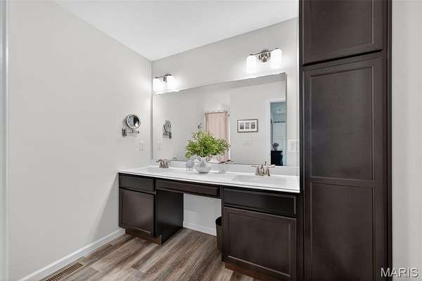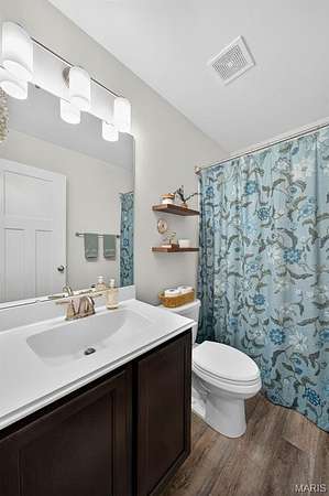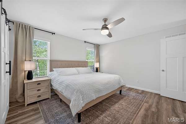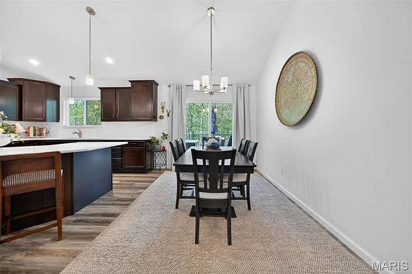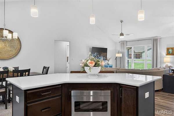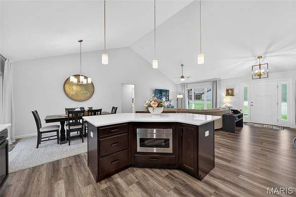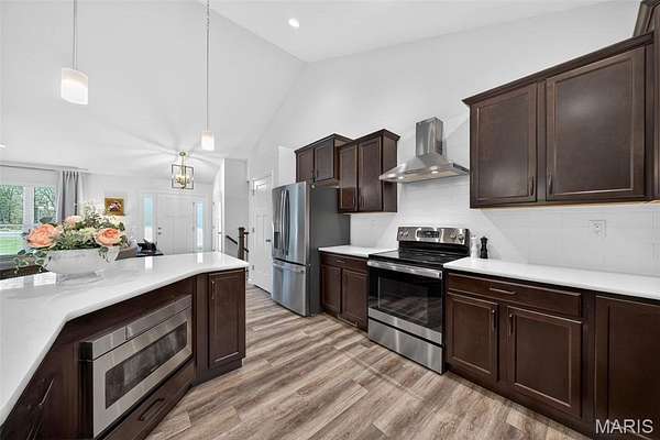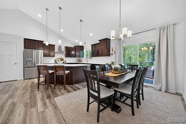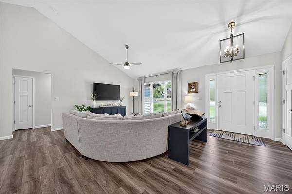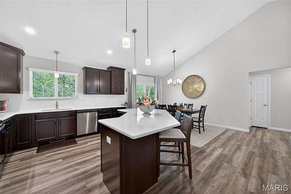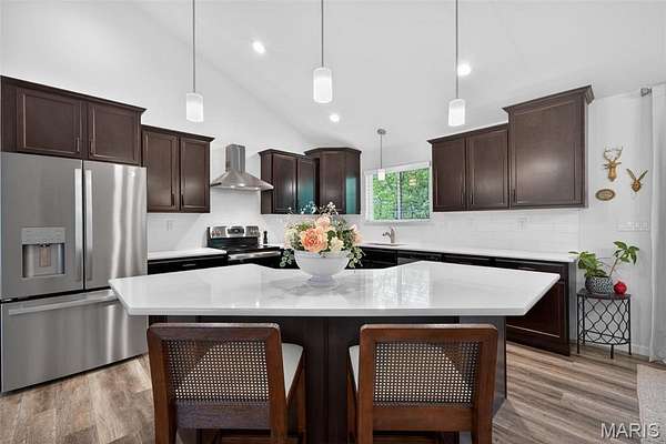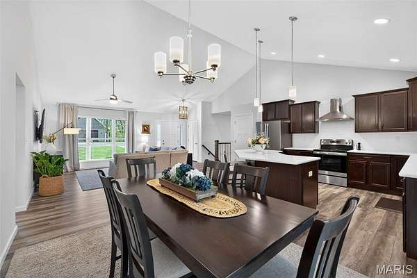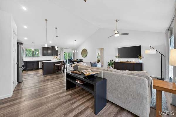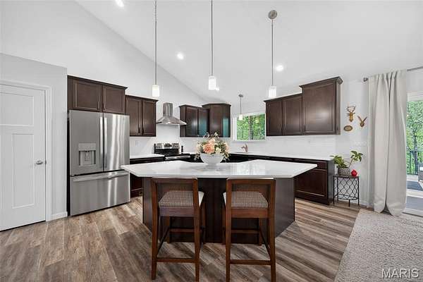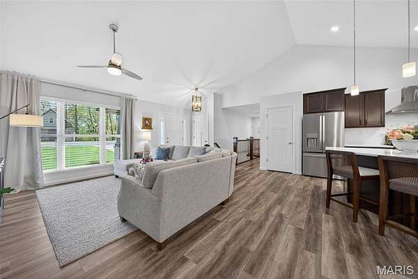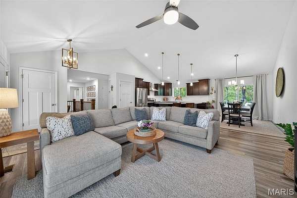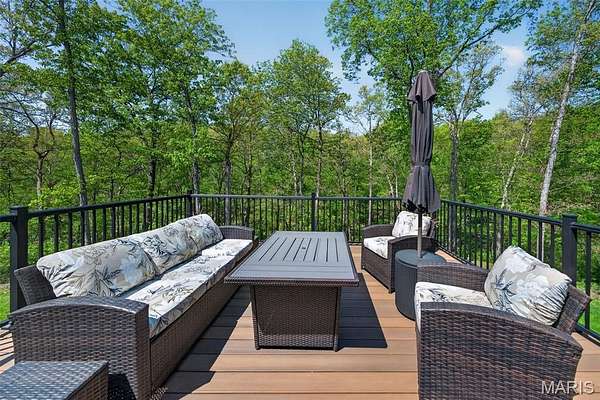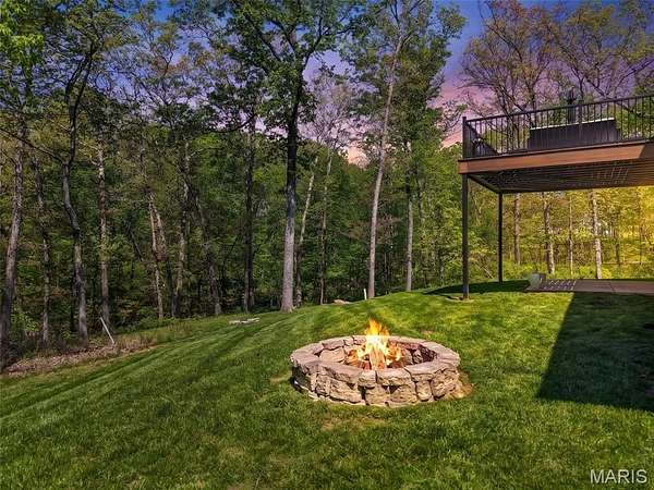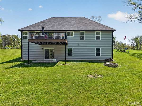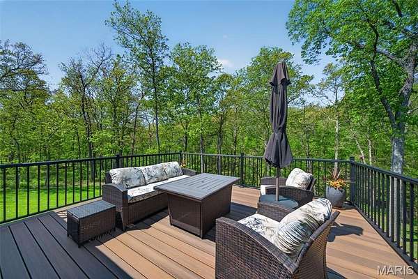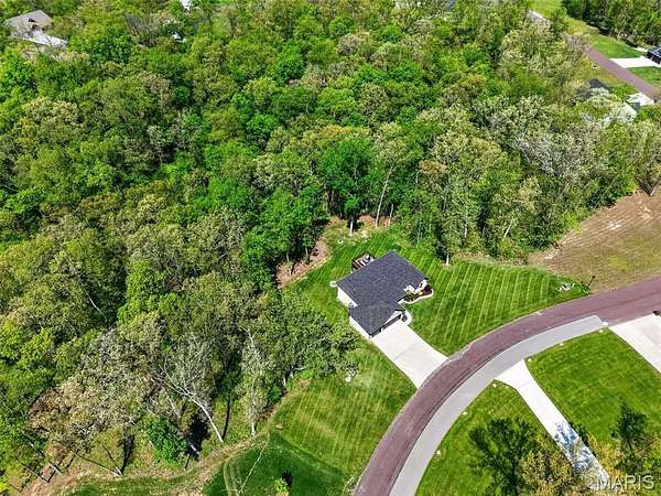Tucked away on 3 private acres of tranquil, peaceful land in the desirable Bluffs At Eagle Fork community, this custom-built home offers a rare opportunity with the perfect blend of luxury, comfort, and seamless indoor-outdoor living. Thoughtfully designed and loaded with high-end updates, every detail has been crafted to elevate everyday living. As you arrive, you'll notice the meticulous care and detail of this home. From the upscale landscaping and retaining wall, to the gorgeous yard featuring an irrigation system with buried downspouts. Step inside to an open floor plan highlighted by soaring vaulted ceilings and luxury vinyl plank flooring that flows throughout the entire home, creating a cohesive and modern feel. The heart of the home is the chef’s kitchen, featuring sleek quartz countertops, stainless steel appliances, microwave drawer, hooded vent, and an expansive island—perfect for cooking, entertaining, and gathering. Designed with the sought after split floor plan, the private primary suite is set apart from the rest of the home and features a spa-like bathroom with an oversized zero entry walk-in shower. Two additional bedrooms are located on the opposite side of the home, offering comfort and privacy for family or guests. The living space extends effortlessly outdoors, where you’ll find a private setting with the impressive new composite deck supported by steel beams, complete with aluminum railing and ambient underlighting. The cozy firepit creates an inviting space to enjoy the serene surroundings. This lot is ideal for relaxing evenings or hosting guests. The walk-out basement adds additional versatility and easy access to the beautifully maintained exterior. Additional upgrades include a whole-house water filtration system, security cameras, water softener and so much more, ensuring convenience and peace of mind. This exceptional property combines modern luxury with natural beauty—offering a private retreat you’ll be proud to call home. It's time you LOVE WHERE YOU LIVE.