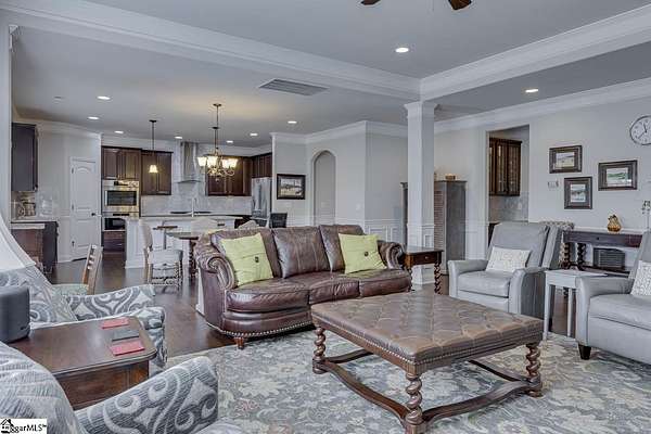 WELCOME HOME TO 156 GRASSY MEADOW DRIVE! Located in the Gated Community of the Reserve at Green Valley, This Travelers Rest Beauty Sits On 1.78 Wooded Acres! This incredibly spacious 7BR/4.5BA Basement home features nearly 6,000sqft of finished living space. Let your mind go wild with this one owner, meticulously maintained home. As you walk into the Grand Foyer, you are immediately greeted with gorgeous hardwood floors, a grand staircase and lovely moldings. On your right is the nicely sized Dining Room with an attached Butler's Pantry that connects the Kitchen. The open Living Room and Kitchen is ideal for entertaining. The Living Room features a large stone gas fireplace flanked by built ins on each side with windows overlooking the enormous back yard. The Kitchen is nicely appointed with 42" cabinetry, granite countertops, stainless steel appliances and undercabinet lighting. Off the Kitchen is a lovely covered deck that is the perfect perch to see all the wildlife roaming in the back yard. On the opposite side of the home is the Primary Bedroom Retreat that you've always been looking for, which also includes a large Sitting Area with gas fireplace. The En Suite Bath includes a large soaking tub, separate tiled shower, dual vanity sink and a massive Walk In Closet. Upstairs, you will find space for everyone. The Bonus Room will be the ideal room toys, games and a great hangout space. Five spacious Bedrooms share two nicely appointed bathrooms, so everyone in the family have lots of rooms to choose from. Downstairs, you will find the Basement which completes this vast home. There are two separate Rec Rooms, one of which could be set up as the perfect Media Room as it also includes a Wet Bar. A seventh bedroom and separate bathroom are also downstairs which could create the ideal In-Law Suite situation for your family. One cannot forget the amazing unfinished space which is the perfect wood working area and workshop for all those little projects. Off the Basement, a large patio and stone wall create a wonderful environment to overlook and enjoy the great outdoors. With almost 2 acres of land, you have so many opportunities at hand. The current owners have done a wonderful job with their plantings and you will see the fruits of their labors in the spring. There is so much to love about this incredible home. Located just minutes from the quaint Downtown Travelers Rest and 15-20 minutes to Downtown Greenville, it is a convenient location to feel far enough away, but just moments from all the action. For the golfers in the family, Green Valley Country Club is also just right around the corner, so grab those clubs and racquets and enjoy a match with your neighbors. Come make 156 Grassy Meadow Drive your new home address today! With all this available at such an incredible price, it surely will not last long!