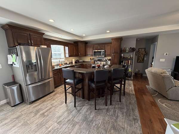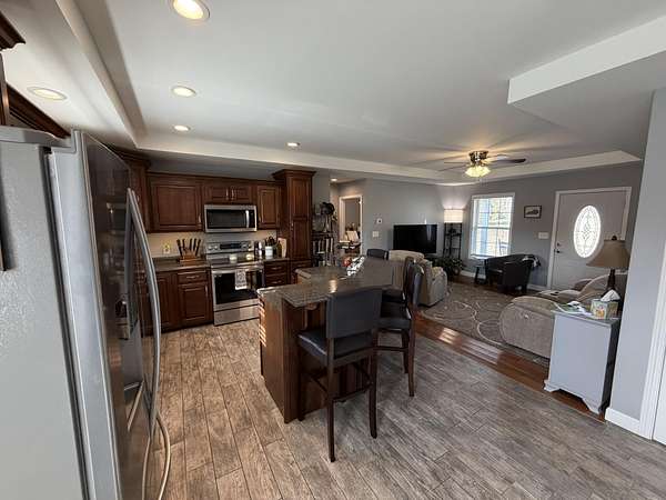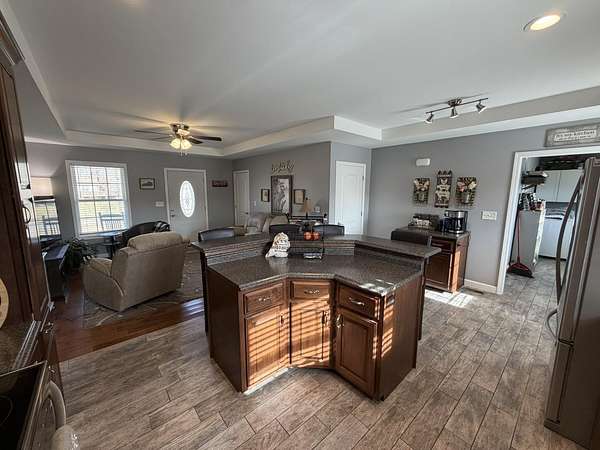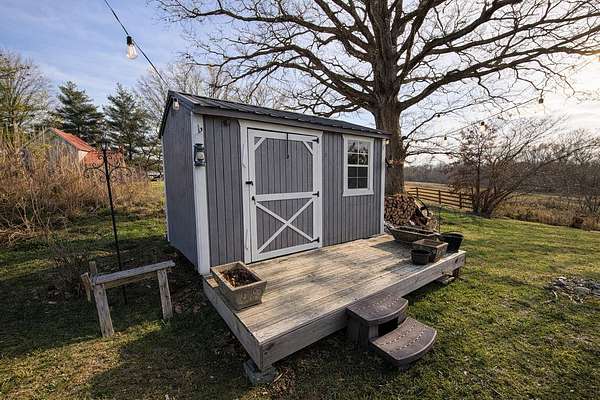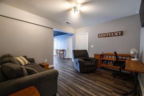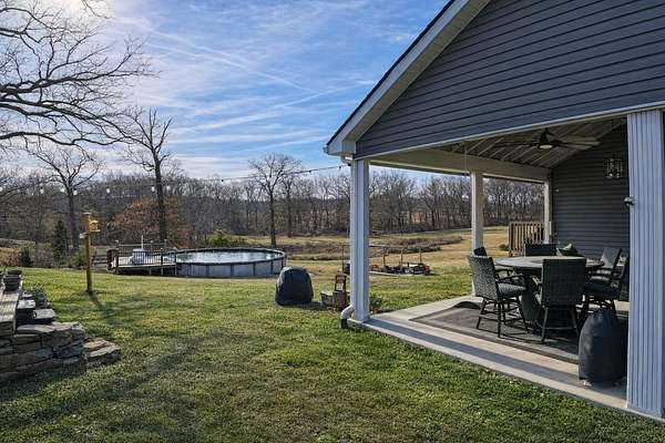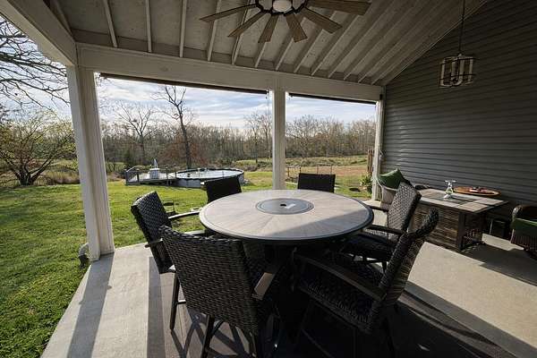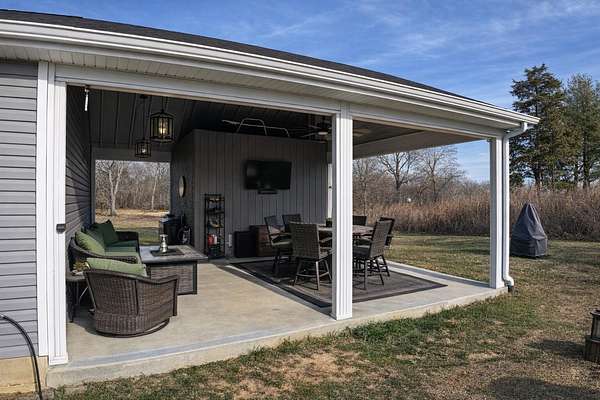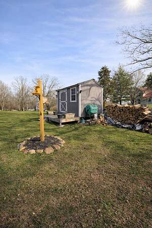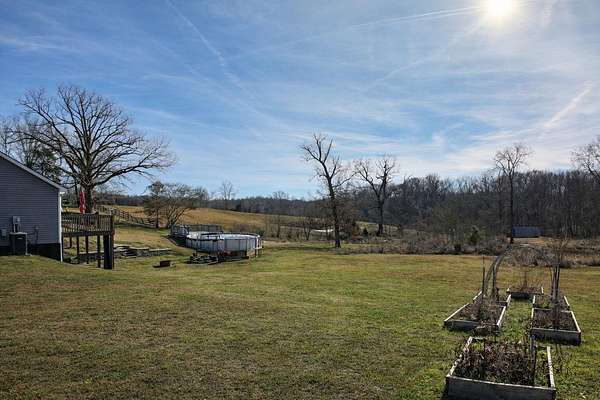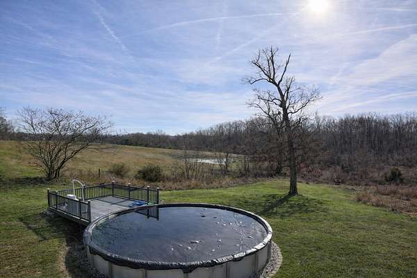 Nestled on 1.59 Kentucky country acres, this 2018-built home offers 3 bedrooms, 2.5 bathrooms, and 1,822 sq ft of living space, plus an additional 420 sq ft of covered outdoor living. The home is constructed with a full poured concrete lower level, providing exceptional strength, durability, and long-term structural integrity. The main level features an open floor plan with real hardwood flooring, a comfortable living area with a tray ceiling, and a modern kitchen with stainless steel appliances. The owner's suite is located on the main level and includes a private bathroom with jetted tub, tile surround, oversized layout, and walk-in closet. A convenient half bathroom is also located on the main level, ideal for guests. Additional main-level features include a bright, functional laundry room with built-in upper cabinets and a folding/work surface, an attached one-car garage, and a breezeway leading to the outdoor living area. The lower level is built with full poured concrete walls and concrete floors, offering a solid, moisture-resistant foundation. This level includes a spacious secondary living room and a private bedroom, making it ideal for kids, teens, guests, or multi-generational living. Waterproof, scratch-resistant luxury vinyl plank flooring is installed for durability and ease of maintenance. Outdoor amenities include a covered outdoor living area with space for grilling, dining, and relaxing while overlooking the above-ground pool. The property also includes two stand-alone storage buildings, plus a storage room attached to the home, providing excellent storage and functionality. Enjoy a quiet country backdrop with open views while remaining conveniently located approximately 15 minutes from I-75, Walmart, Lowe's, hospitals, restaurants, and Eastern Kentucky University, and less than 30 minutes from Lexington, KY!