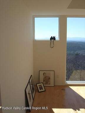 A magical spot 1500' above sea level and offering spectacular 75 mile long views of the Catskill Mountains! (all photos taken of the view are taken from inside the house, not a drone!) Modern home with floor to ceiling windows to soak in the views while enjoying the warmth of the fireplace. Clean lines and open floor plan. Two bedrooms plus a finished room w/closet in the walk-out basement. A one of a kind property located minutes to the Berkshires, Chatham, Hudson, or Albany and water rights to nearby Queechy Lake for kayaking, fishing, or swimming and close to an abundance of cultural activities.