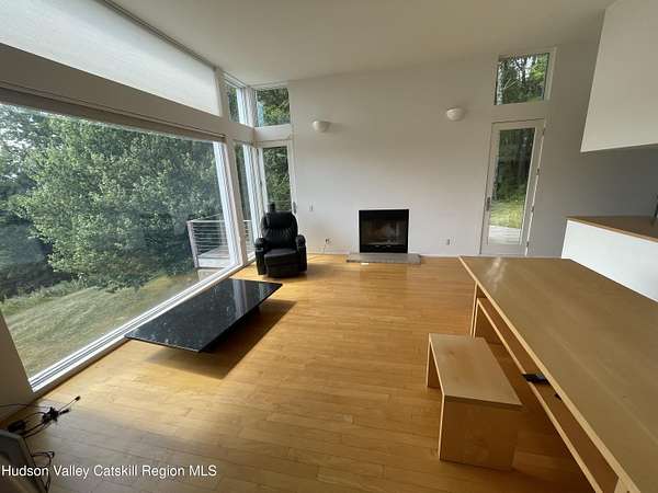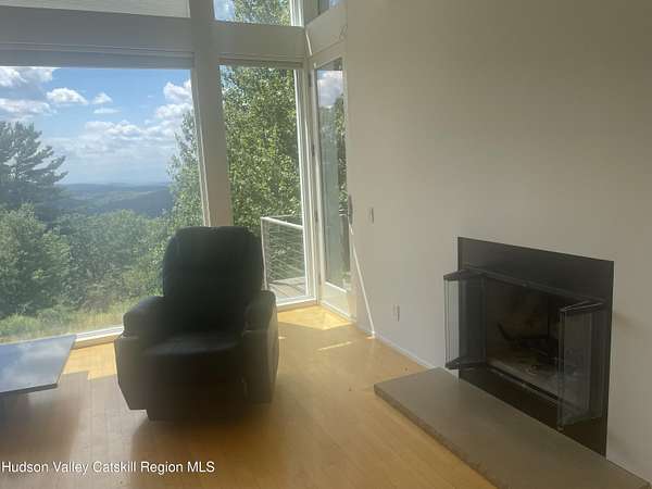 Est $4,249/moA magical spot 1500' above sea level and offering spectacular 75 mile long views of the Catskill Mountains! Modern home with floor to ceiling windows to soak in the views while enjoying the warmth of the fireplace. Clean lines and open floor plan. Two bedrooms plus a finished room w/closet in the walk-out basement. A one of a kind property located minutes to the Berkshires, Chatham, Hudson, or Albany and water rights to nearby Queechy Lake for kayaking, fishing, or swimming and close to an abundance of cultural activities.