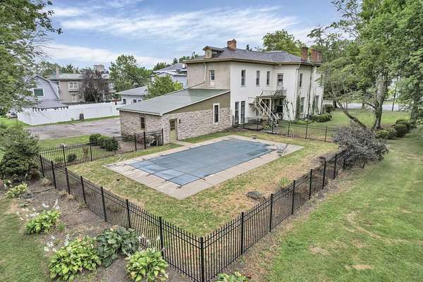 The Manor is a turn-of-the-century estate on 2.2 wooded acres in the heart of London offering historic charm and modern updates. This elegant home features 4 bedrooms, 3 full baths, and 5 fireplaces. A grand parlor welcomes you in, while the formal dining room with original built-ins showcases timeless craftsmanship. Gorgeous hardwood floors flow throughout leading to an updated kitchen with granite counters. The primary suite includes a kitchenette, and a second-floor laundry adds convenience. Outside, enjoy the in-ground pool surrounded by mature trees, plus a separate two-bedroom guest house with endless possibilities. Truly a rare property that blends elegance, comfort, and versatility.