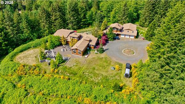 Highly motivated seller. Property recently appraised at $2M. Best of Both Worlds! Private location, yet 15 minutes from the I-5 and then minutes to all amenities - NE of Kalama, Washington - This 7,000 sq ft custom estate offers a rare blend of natural beauty and architectural intent with a 2-story Primary Suite, 7 bedrooms, 5 full baths (9 total rooms) 2 of which are private Guest Suites. There is also a writer's loft and a separate self-contained studio apartment. Perched atop a Ridge with 8.40 acres, the home is oriented for southern exposure and has 60 plus mile views of the coastal range. A sequoia-lined drive leads to a circular motor court and a finished 3-car garage with skylights. Inside, timeless wood and stone elements meet artistic utility and features: A gourmet kitchen, butler's pantry with granite countertops throughout the property, an expansive Great Room with wood stove, and a handcrafted bar with a raised relief topographical map of Washington State. Multiple patios, decks, children's cupola and a 7-hole putting green provide purposeful retreat. Two seasonal and 2 year-round creeks feed a private waterfall, with a trail system and potential cabin sites. 45 minutes to PDX and 1 hour to Pacific Coast beaches. This estate is a true legacy, lifestyle property!