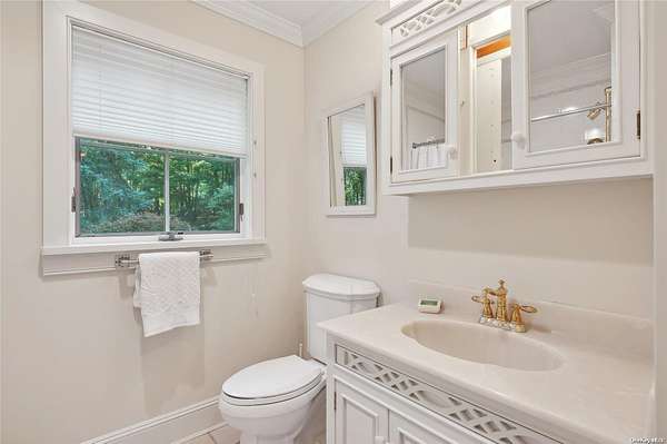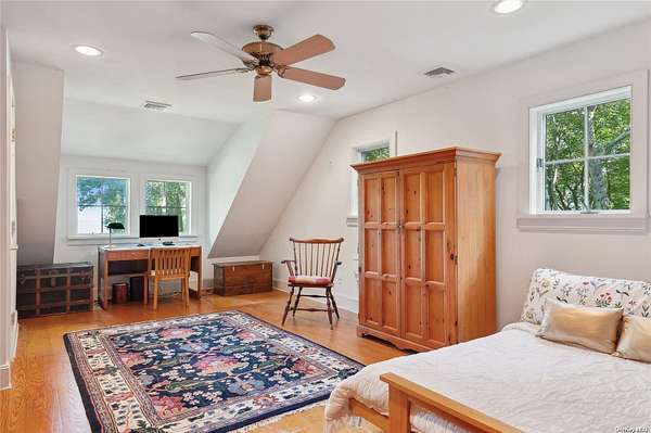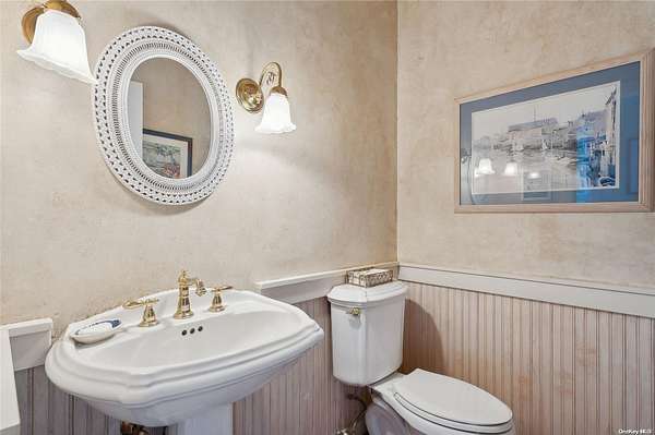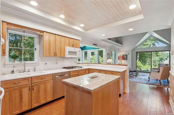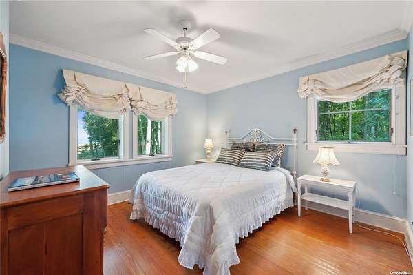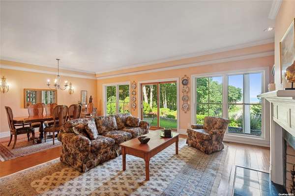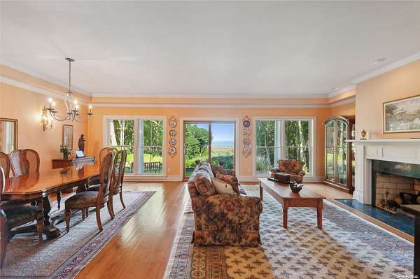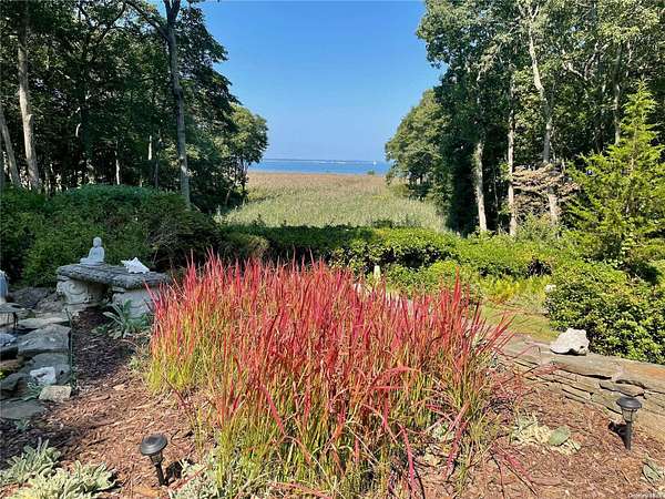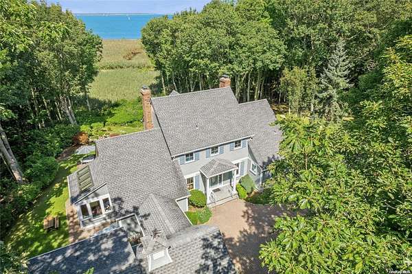 Surrounded by preserved land this classic home has an absolutely magnificent setting that includes stunning water views. The open kitchen, breakfast room and family room creates a comfortable bright living area that walks out to a lovely patio overlooking Gardiners Bay . The more formal dining and living room with fireplace also provides amazing views of the water. The spacious primary bedroom with balcony is as dreamy as the view, which is truly incredible. An oversized bath and additional upper-level bedroom complete this private owner's area. Two main level bedrooms serviced by a full bath will accommodate family and friends beautifully. A two-car garage and studio with a half bath is a great place to set up your game room or home office. A full basement with high ceilings can be finished to incorporate an exercise or workout room. Lush landscaping with charming stone walls on 1.90 acres completes this peaceful location. Finished Square Footage 3420 includes the Studio. Property could accommodate a pool.