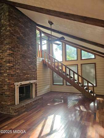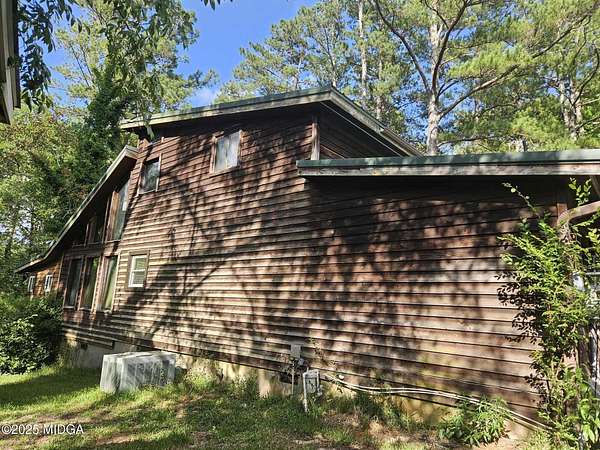 Great location in the Creekside Subdivision in Jones County, GA! Pond, main house, guest house, workshop and inground swimming pool all situated on approx 5.42 private wooded acres. The main house has a metal roof, cedar siding and is 1.5 stories with approx 2,408 sq ft. It has 3 beds and 3 baths (master bed is on the main floor). There is an extra room to use as you wish and also a sunroom/bar area with nice brick flooring. The great room has a beautiful brick fireplace, wood floors and lots of windows for natural light. Paved circle driveway, covered side porch and huge wooden deck. The guest house has approx 1,320 sq ft with 2 beds and 1.5 baths. Well and septic tank. Convenient to Gray and Macon. Dames Ferry Elementary district. This is an estate that needs some tender loving care and it is being sold 'as is' (cash or conventional loan only).