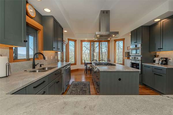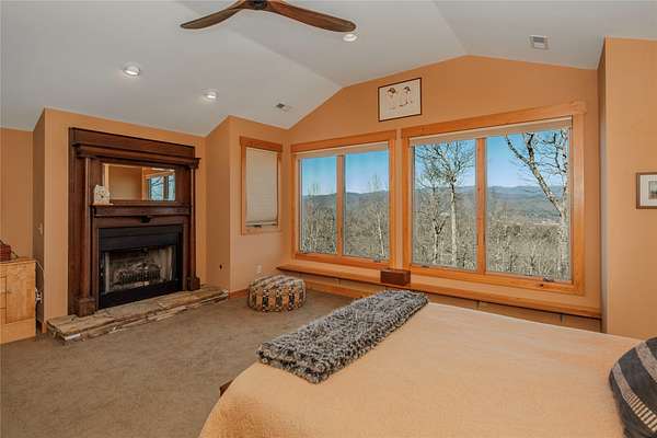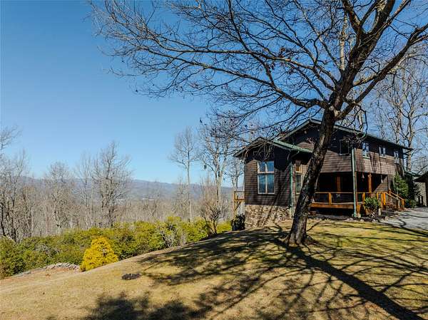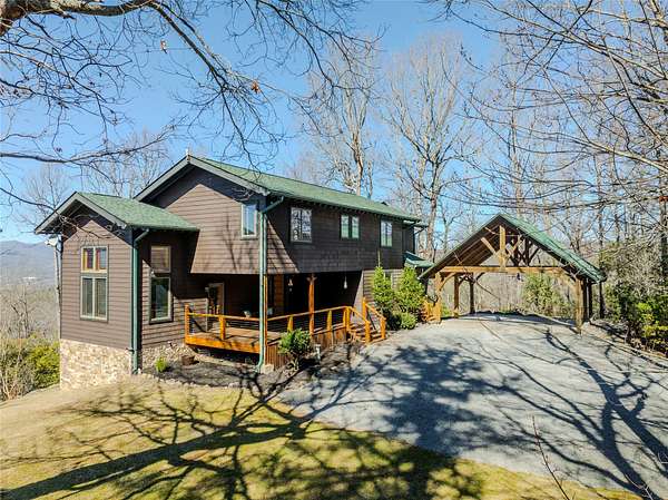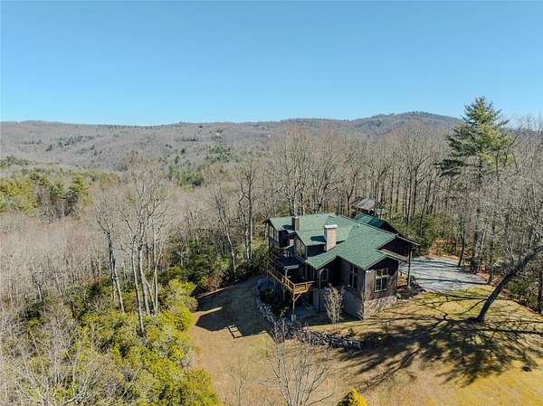 This magnificent mountain top home is a once-in-a-lifetime opportunity to own a custom, luxury home with world-class Blue Ridge Mountain views. Just ten minutes to downtown Brevard, with end-of-the-road privacy, the property has a guest house, a small pond and a large yard. Owner-built by a high-end contractor, every detail of the house speaks to ease of living, quality, and comfort. Huge windows reveal expansive mountain vistas in most of the house, including the large primary bedroom. The modern, gourmet kitchen, with stainless appliances and a large cooktop island, opens to the great room with its stately stone fireplace and hardwood floors. The spacious back deck is perfect for enjoying the long-range mountain views. The unfinished lower level includes another large stone fireplace and could easily be finished for more living space. For video see; for 3D walkthroughs, see (main) or (guest).