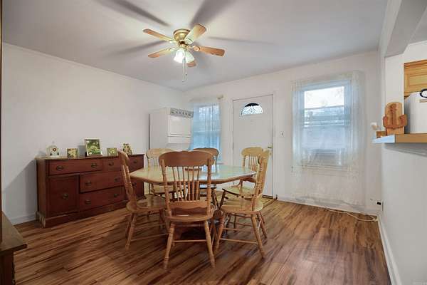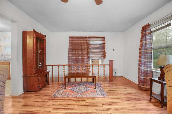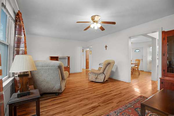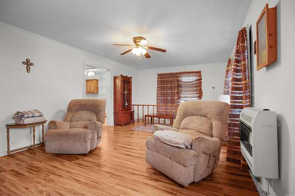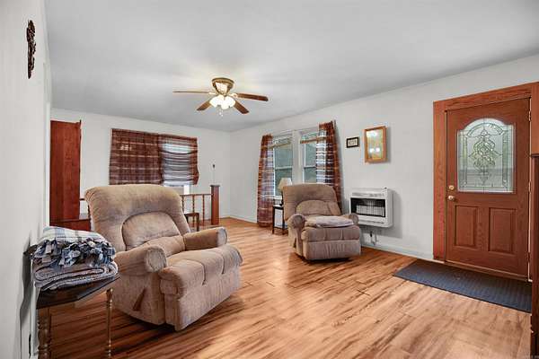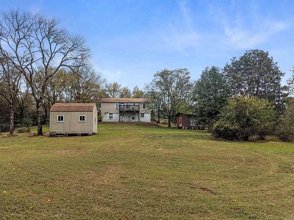 Set on 4.32 picturesque acres, this 1972 family home offers flexible two-level living with room to spread out. The main (upper) level features 2 bedrooms, 1 bath, a light-filled living room, an eat-in kitchen, laundry hookup, and a walk-out deck overlooking the peaceful countryside. The lower level includes a second living area, 1 bedroom, 1 bath, a laundry room, a second kitchen, and a dining room, ideal for multigenerational living or guest quarters. Two outbuildings provide space for storage, tools, or hobbies. The home currently has no central heat or air but is equipped with propane heaters upstairs and downstairs (just add a propane tank). With open land for gardening, animals, or expansion, this well-loved family property is full of potential and rural charm. Home is on city water but there is a well on the property.