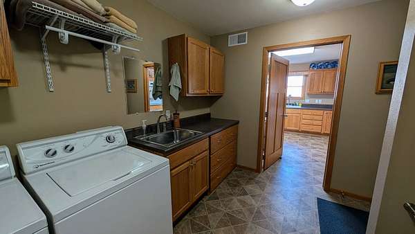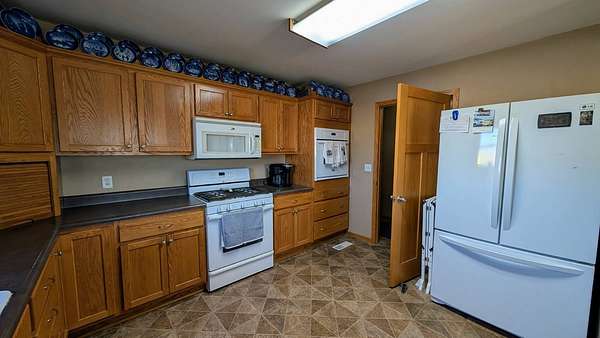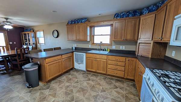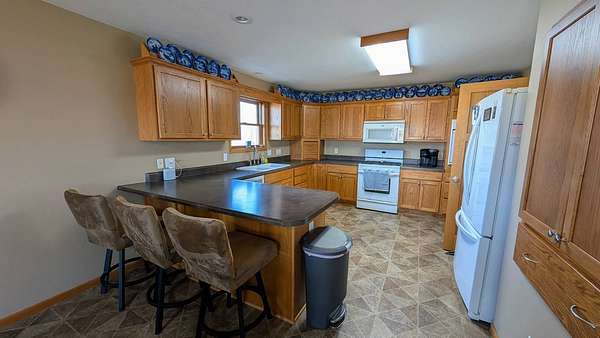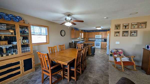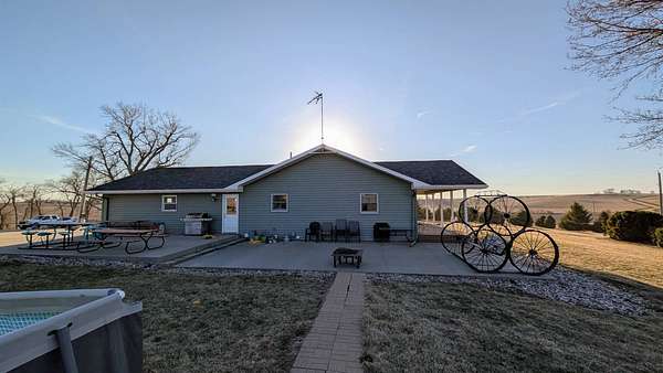 This southwest Iowa acreage is ready for its new family. With the home being built in 2009, it offers a solid foundation with an abundance of room both inside and out to accommodate any sized family or get-together. The main floor consists of a spacious kitchen featuring two ovens and endless countertop space and has the convenience of the laundry room with extra bath nice and close. The dining area flows seamless to the living room with sliders to the maintenance free covered deck with views for miles. On the west side of the home you have an office/play room, full bath and two bedrooms including ensuite in the primary. Downstairs you'll find a large family room, spacious bath with another washer/dryer set and 3 more conforming bedrooms with amble closets. Still not enough room for entertaining? Move the vehicles out of the heated 2 car garage and roll out the carpet remnant for those large holiday gatherings. Save on utilities with the geothermal heating/air system. The roof was just replaced in 2021 and the home is hooked up to rural water and has a softener system, if preferred. Outside offers endless amenities including firepit area, pool, teeter-totter, and the foundation is already poured to add a sun-room if you'd like. The machine shed is fully insulated and includes heaters, washer/dryer, air compressor and large storage shelves. The extra garage is also heated and provides a handy workshop space and is perfect for all your littlest pets. You've got the cutest tack shed with hitching post - if horses aren't your thing, maybe gardening is. There are two automatic waterers hooked up to the private well for any livestock needs along with separate cattle barn and lean-to with hay loft. An extra bonus, a wood shed filled all the firewood you could need. The property features a long lane so you don't have to worry about the gravel dust or kids playing too close to the road and it has a well established evergreen tree line to the west. Don't wait too long to see in person what all this property has to offer - you won't be disappointed.
