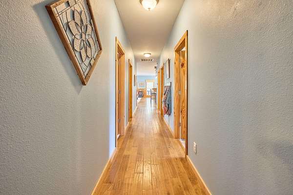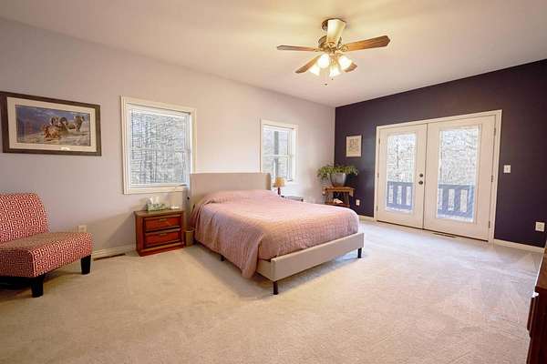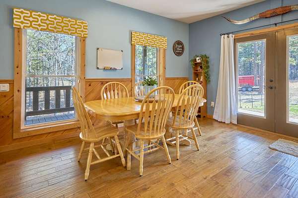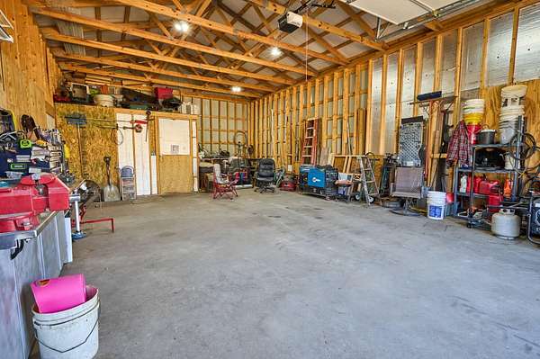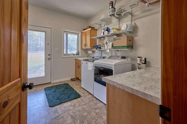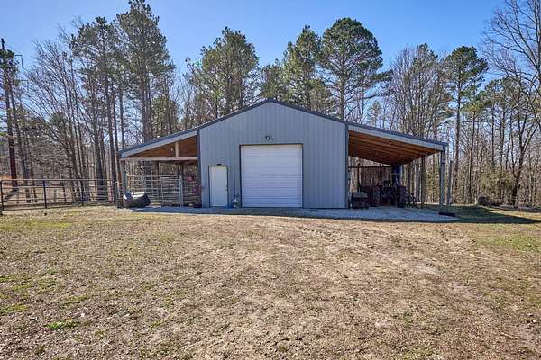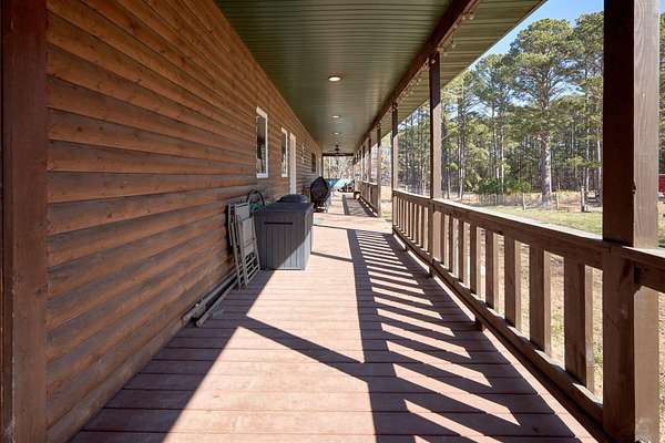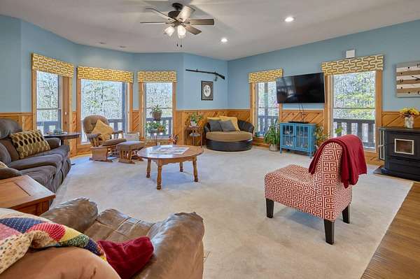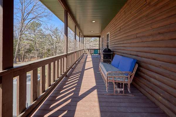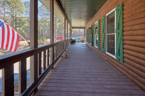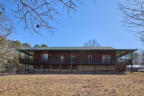 Oh wow! Are you ready for your piece of secluded paradise on 30 acres? This 5 bedroom, 3 bath log-sided home is just perfect! On entering the property, you'll wind your way up a gravel driveway shaded by sentinel pines and towering oaks, which opens into a large completely fenced yard, where the home lies near the center of the property ensuring your privacy. You'll immediately notice the 8ft wide covered wrap-around porch, so no matter what the time of day, there is always a shady place to enjoy your peaceful paradise. Upon entering the home, you'll be greeted with a wide-open kitchen with beautiful hardwood flooring, maple cabinets, all stainless-steel appliances, and a split-level island with in-sink disposal which faces the spacious carpeted living room area with a pellet stove. Large double-hung windows provide the panoramic views you expect throughout the home. Going down the hall, you'll have a full bath with tub shower and a large laundry/mud-room with a utility sink on the left and two spacious bedrooms with wall closets and built-in cabinets on the right. At the end of the hall, lies a huge master suite with double French doors that open onto the wrap-around porch. The recently remodeled master bath has his and her vanities, linen storage and walk-in shower. The walk-in closet has built-in cabinets and plenty of room for all your hanging clothes. The fully finished basement has a two-car garage that spans the width of the home! It will hold two full size vehicles and have room left over to walk between them! Another spacious family room greets you from the garage. There is a room on the left for a small office or workroom, another full bathroom with tub shower, under-stair storage, the mechanical room with central air-handler, water softener and whole home water filtration system being fed by the variable speed well pump for constant water pressure no matter the demand. The large pantry will hold all your supplies and occasionally used small appliances.
