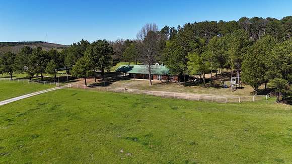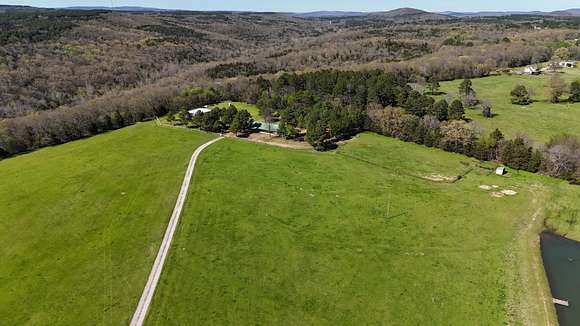 Looking for a secluded dream property with a custom home? This is it! 58 +/- acres and a custom built home that is secluded with a view! The custom log siding home is 4,000 sq foot under roof and 2380 sq foot heated and cooled. The home has 2 fireplaces, one built with cobble stone from Utah, and the other with cobble stone from Colorado. It is a 3 bedroom 2 bath with a huge master bedroom with a fireplace and lights you can control without having to get out of bed. The master bath has a huge tub, a shower, and has his and hers toilets. All bedrooms feature large walk in closets. It has a formal living room with high ceilings and a den with lots of wood siding on the inside. The cabinets, book shelves, and vanites are made out of solid pine. Sit on the 8x30 front porch and enjoy your morning coffee watching the sunrise. Invite your family and friends over to enjoy the 20x20 party porch, and if you love horses and rodeos host your own in the 300x150ft rodeo area located by the house. The arena has a steer shed and a stripping chute. The 40x60 shop with 110 & 220 power, 30 & 50 amp rv hookups and water offers space for tools, boats, and side x sides. The shop has 5 bays and water on each corner. Located behind the shop is a 40x60 pad if you want to extend the existing shop building. There is a she shed with power located behind the house. The property is perfect for having horses or running a small cattle operation and is a hay producing piece of land. Lots of hunting opportunities with several nice bucks being harvested in the woods that join Webber Creek. Located not far from Lee Creek WMA making your hunting and nature opportunities abundant. To see this amazing property contact Chris Hacker today 479-312-7876 !