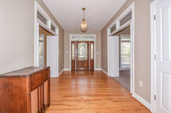This custom estate, two story home is approximately 4600 square feet. You are greeted by a large front porch, making it a perfect place to have your morning coffee or a peaceful place to relax and unwind. Entering the main level of the home, you will find a warm and inviting open concept perfect for entertaining family and friends. The kitchen is very spacious with with plenty of cabinet and pantry space, with an island that also provides additional seating and storage. It also features a formal dining room.