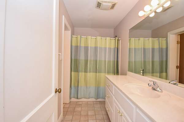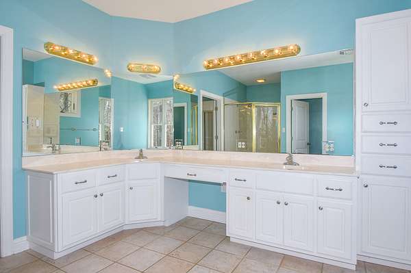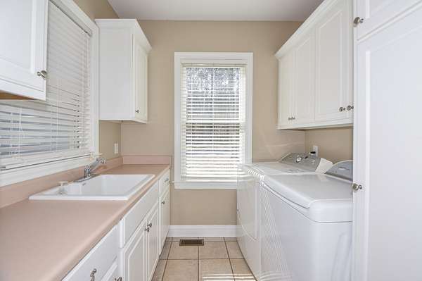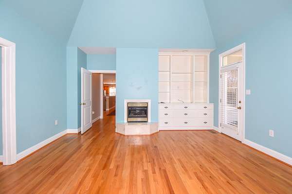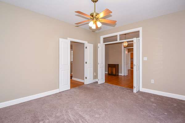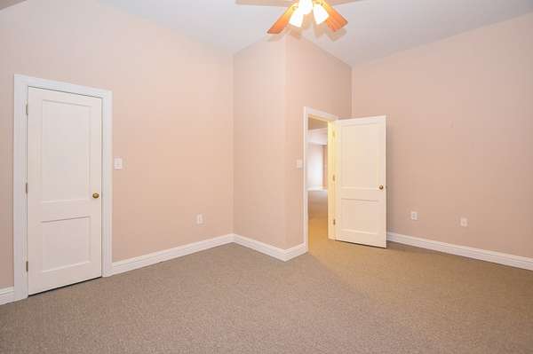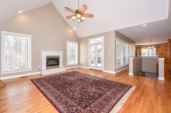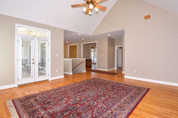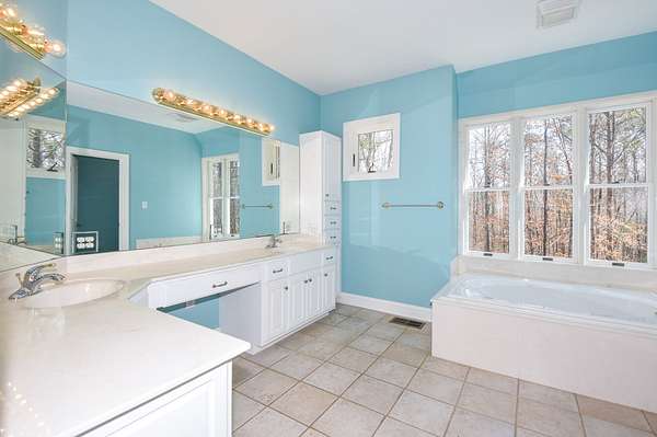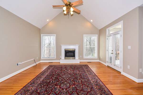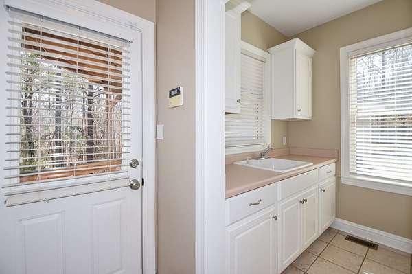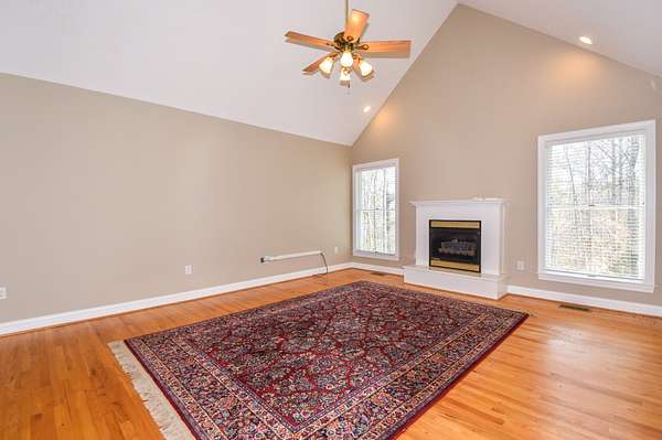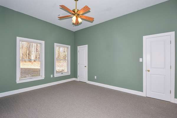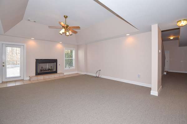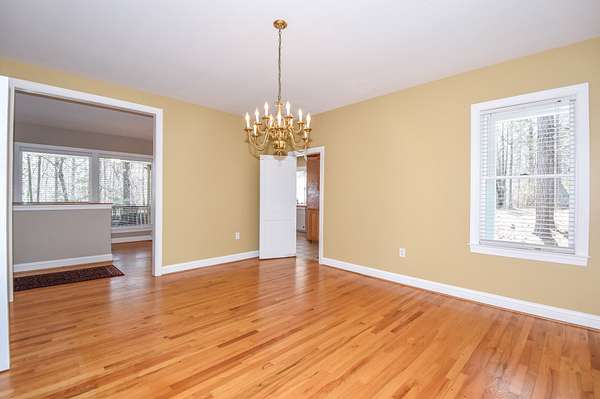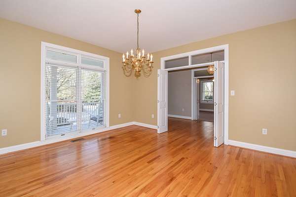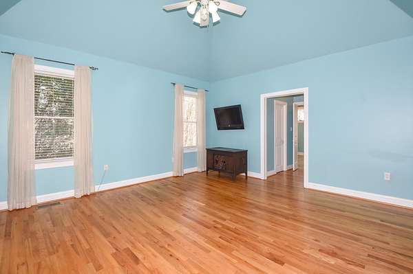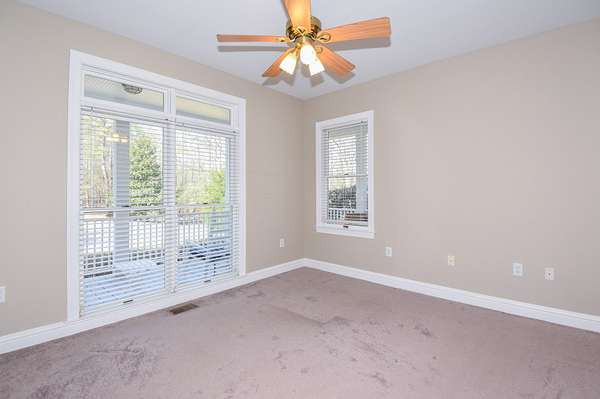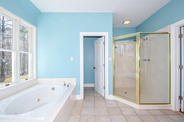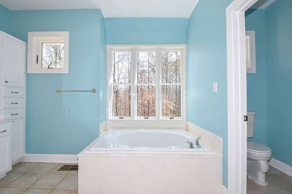 The main living room area is large and spacious with many windows to allow for plenty of natural light and beautiful views of the hardwood trees behind the house. There is also a large master bedroom and bathroom, complete with a stand-up shower, jacuzzi tub, and his and hers closet space. There is also an additional room that is being used as a music room and a study.