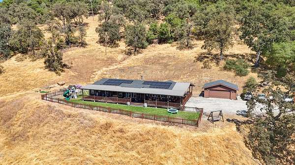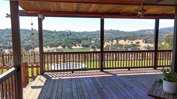 Wrapped in views and country quiet, this home sits just outside historic Angels Camp with room to spread out. The wraparound porch sets the tone, coffee at sunrise, friends at sunset, and everything in between. Inside, the floor plan flows easily for everyday living or hosting. The kitchen is a real centerpiece: granite counters, copper sink, butcher block island, and a Butler's pantry to tuck everything neatly away. The living room's rock hearth and wood stove bring warmth in the winter, while three bedrooms plus an office offer flexibility for work and play. The primary suite delivers comfort with dual vanities, a soaking tub, and big-sky views right from the shower. Practical details make it all work, leased solar for lower bills, detached garage, storage sheds, fenced yard for pets. The acreage is ready for horses, gardens, or whatever big plans you've been holding onto. Close to Murphys, New Melones Lake, Big Trees State Park, and Bear Valley Ski: yet just an hour from the Valley. Note: Please don't use Google Maps and contact listing agent for accurate directions.