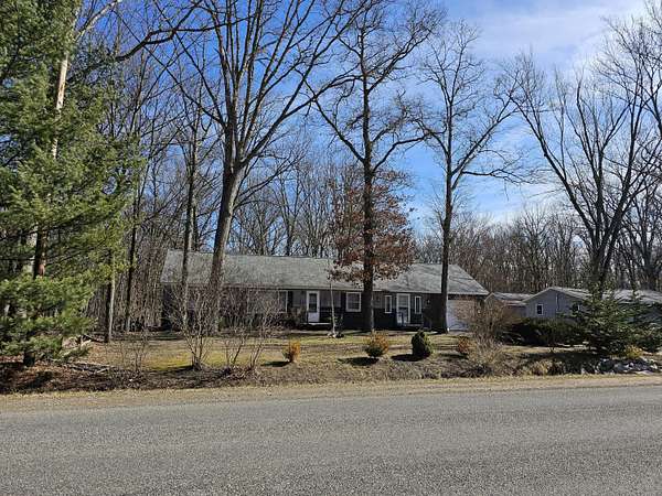 Est $1,102/mo4 possibly 5 bedrroms, 1.5 bath. Wood burning fireplace, and sliders to the fenced back yard. Almost 2 acres with an attached room on the back of the house, a shed and large 24 x 32 Pole barn . A lot of work has already been started. Much larger than it appears from the front. Finish what was started and make it all your own.