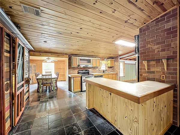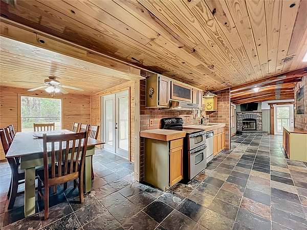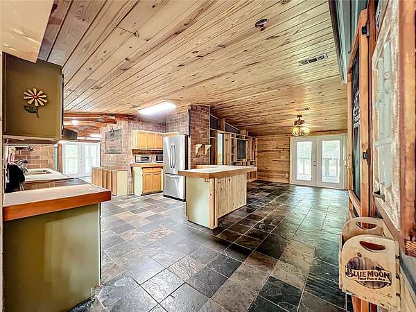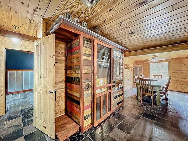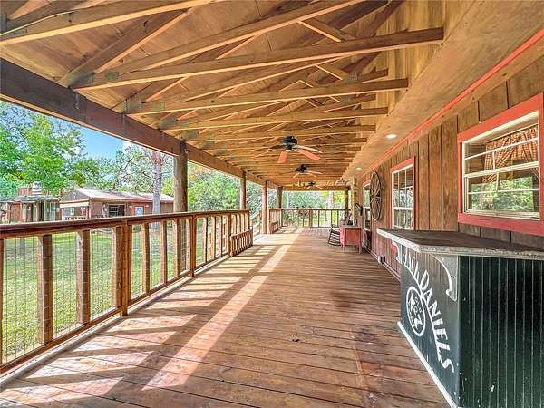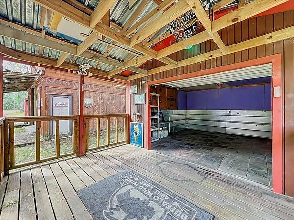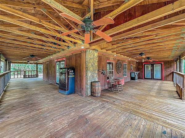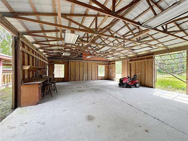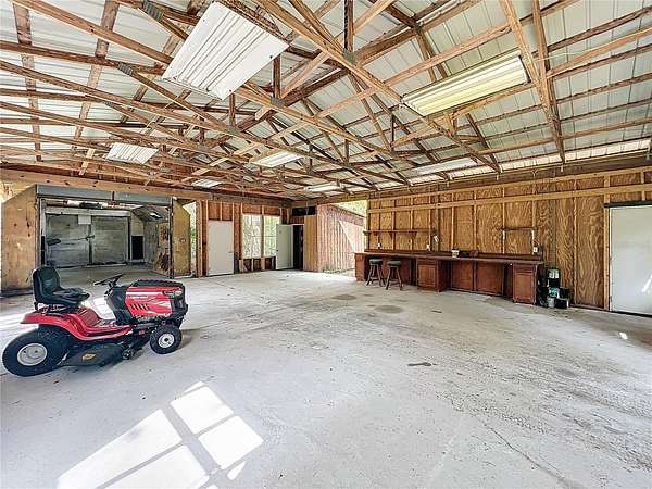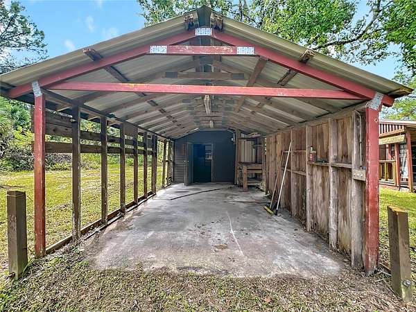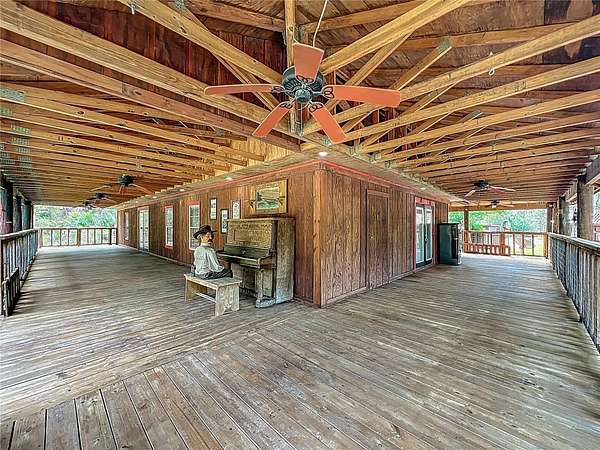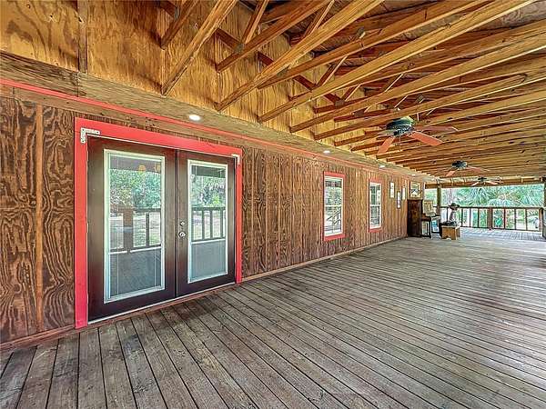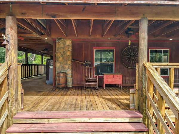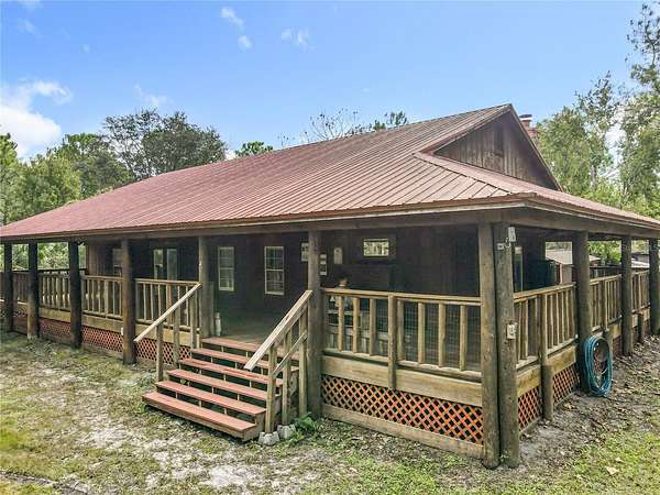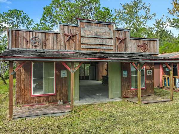 Under contract-accepting backup offers. This once in a lifetime opportunity is a residence that is perfectly designed for those seeking an escape from the hustle and bustle with absolutely no neighbors in sight! Welcome to your slice of paradise in Osteen, Florida. 1560 Saddle Run is where nature and comfort converge on a sprawling gated 10-ACRE LOT with 5 acres fully fenced! This home is located at the end of the road. With 1,512 square feet of living space, this property features a NEWER HVAC SYSTEM (2022), an UPDATED WATER HEATER and a WOOD BURNING FIREPLACE. No need to worry about the roof! It comes topped with a METAL ROOF that covers a tremendous inviting wrap-around deck. Enjoy the privacy and serenity of your own previously STOCKED FISH POND. The opportunities are endless here! The property comes with an expansive 15 x 15 entertainment bar garage and stands ready to host gatherings or celebrations. SEVERAL WORKSHOPS ONSITE include a large 38 x 30 pole barn that provides more than ample space for creative projects or storage and another 26 x 14 workshop perfect for other projects. There is also an attached professional automotive paint booth. Whether you are an equestrian enthusiast or simply appreciate open spaces, this serene setting allows zoning for horses along with RV parking for adventurers or equipment for the working professional. This home truly embodies a harmonious lifestyle embraced by the beauty of nature. Located very close to the Volusia trailhead. To fully appreciate the unique details of the property, it is a must see in person! Showings are by appointment only.