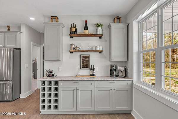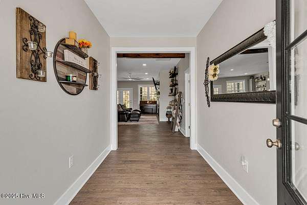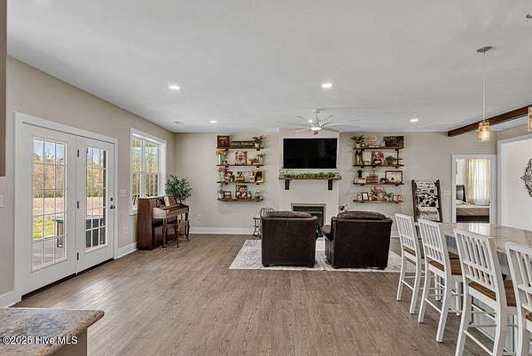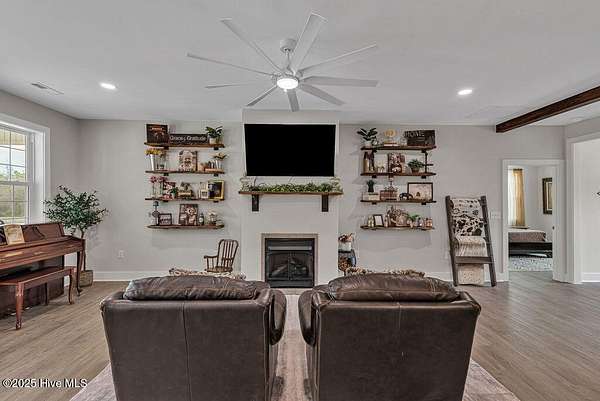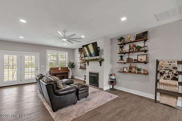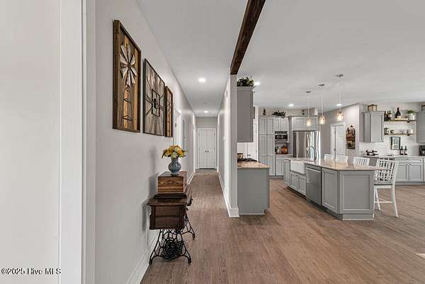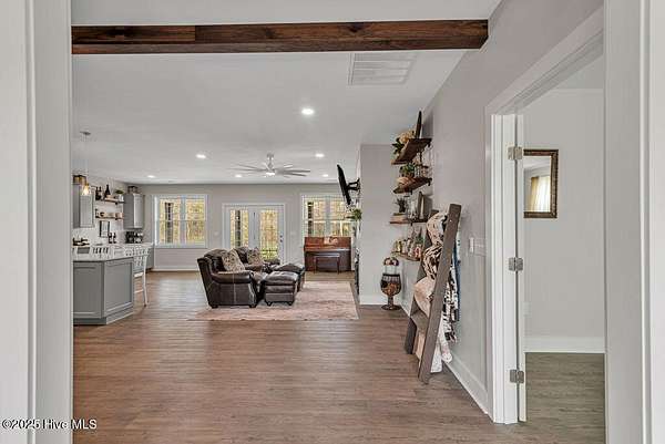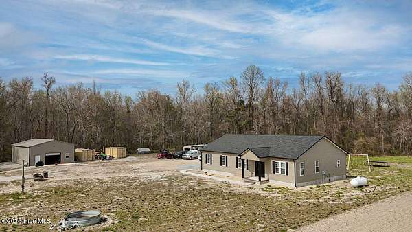 Welcome to Ashton Farm, over 49 acres of beauty. This stunning property features a newly custom-built 4-bedroom ranch-style home with a bonus room. The house spans 2,428 square feet and boasts an open floor plan, with an addition of a wine bar and living space that opens to a covered back porch, that enhances the home's charm and functionality, making it ideal for entertaining or relaxing. This home is thoughtfully designed with features such as custom-made floating shelves, a matching mantle, and a ceiling beam, adding unique craftsmanship and character to the living space. The kitchen and bathrooms feature stunning granite countertops paired with all custom-designed cabinetry, ensuring elegance and practicality throughout. The house includes three full bathrooms, offering ample convenience for residents and guests alike. The immense primary bedroom features a tray ceiling, adding a touch of architectural sophistication, and ceiling fans are installed in all bedrooms for added comfort. The bedroom leads into a large, open private bathroom featuring a custom-designed walk-in shower and dual vanities, creating a luxurious and relaxing retreat. Additionally, the home includes a mudroom equipped with a custom-built wall tree for convenient organization and a deep sink to handle everyday tasks with ease. The property includes over 17 acres of dense woods, teeming with wildlife such as wild turkey, deer, and bear. These lush woods provide endless opportunities for nature exploration and back directly up to the White Oak River. Imagine walking the quiet trails through the woods or enjoying horseback riding while connecting with the beauty of the great outdoors. The land also includes four well-sized pastures''one measuring 3/4 acre and two at 1/2 acre each''as well as two dry lots, offering abundant space and utility for equestrian activities or livestock. 2 wells (1 filtered) and an additional 3-bedroom septic is on site.