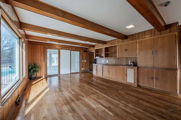 - 1 st Floor Bedroom, 1 st Floor Full Bath, Beamed Ceilings, Bookcases, Built-In Features, Wet Bar