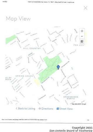 Est $17,952/moA unique property with a unique commercial opportunity to develop 4.2 acres on the corner of Nacogdoches and Topperwein roads only one mile from Highway 1604. Surrounded by tremendous growth of Residential and Retail nearby, High traffic counts, water, electric and sewer available limitless potential for various business projects, This property is zoned C-3 and C-2 and mostly flat lending itself for less expensive construction costs making this a great rare find in todays market. The rarity of a large property with approximately 800 feet of frontage on Nacogdoches along with a hard corner with Topperwein lends itself to develop your business vision.