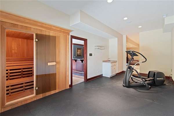 - Bidet, Custom Cabinets, Kitchen Island, Pantry, Sauna, Walk-In Closet(s)
