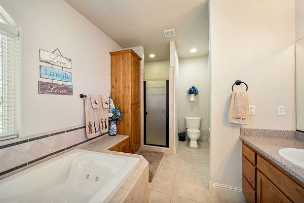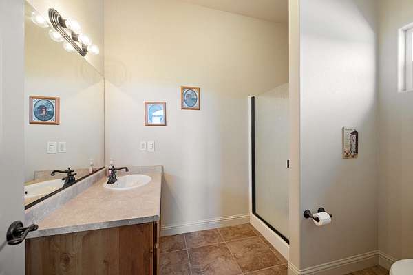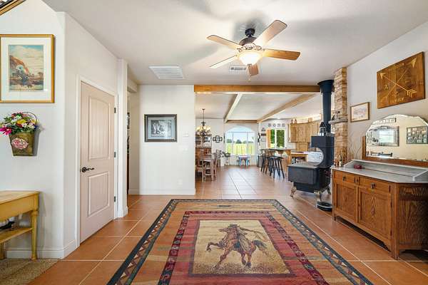 MAIN HOME: Approx. 3000-sq. ft. newer home. The nicely appointed home includes spacious front and rear entry areas, complete kitchen with pantry storage, adjacent dining area, brightly lit great room, office/multipurpose room, laundry/storage, multiple first floor bedrooms and closets, first floor bathrooms, second floor bedroom and closet, additional loft area, and second floor bathroom. The home has many windows providing outstanding views to the ranch. A full wrap-around covered patio area provides generous shaded and weather-protected outdoor living areas. The home is fully landscaped with spacious entertaining areas. A septic system and propane tank serves the home and guest house.