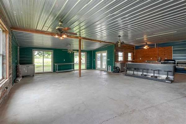 3 bed, 2 bath brick home, outbuildings and Acreage! Experience the ideal mix of rural charm and practical versatility on this unique 10 acre property. Located on a paved road just east of Shawnee this home offers one pond, living quarters in workshop. 10 acres is mostly cleared, fenced and cross fenced. Workshop/barndo living quarter features 2 bedrooms, 1 1/2 baths, open living area and stainless steel kitchen, laundry room. Barn/shop area could be used for horse stalls, 4 H projects, homesteading... ideal for any purpose. 30 x 96 green house with electricity for year round growing. Chicken houses, pecan and fruit trees, covered RV parking. This property could be a Breeding Facility, Animal Rescue Farm, horse farm, The possibilities are endless.