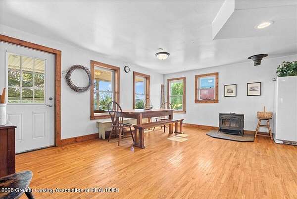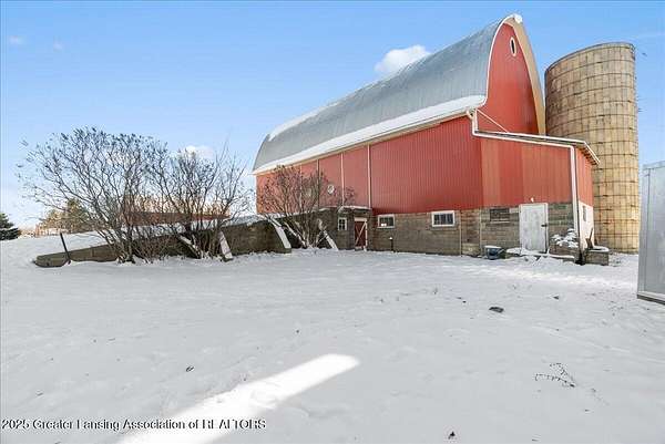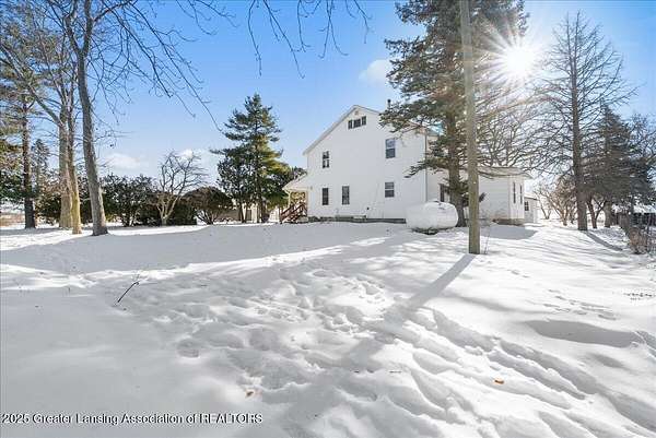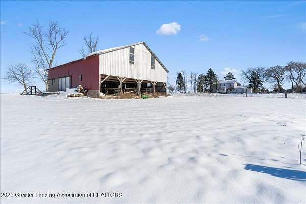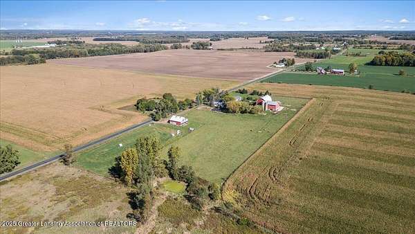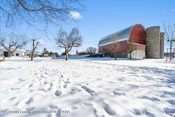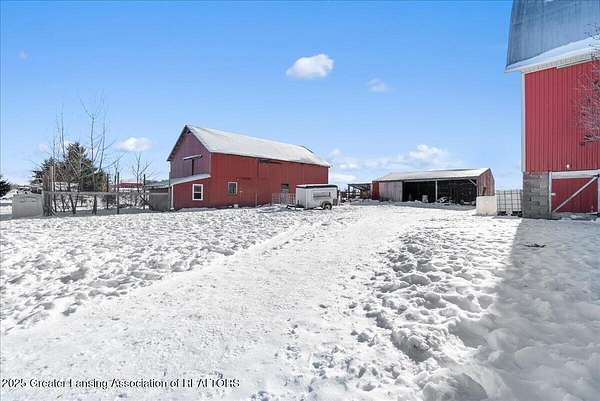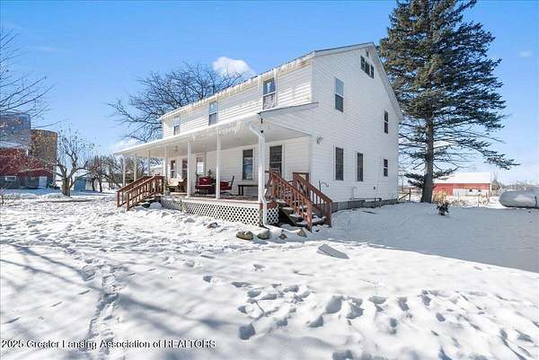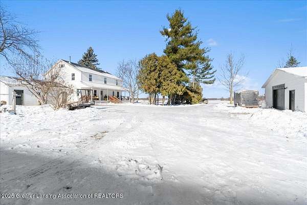 Experience the best of country living with this spacious 5-bedroom, 2-bath 1995 Amish-built farmhouse with attached garage. Sitting proudly on 10 full scenic acres, there are six fully fenced and pastured acres, ideal for livestock, horses, hobby farming, or simply enjoying wide open spaces. Step inside and discover a thoughtfully laid out floor plan of open living space, a main floor bedroom, main floor laundry, a study/home office, and updated second level that blends modern comfort with timeless farmhouse character. Upstairs you'll find four generous size bedrooms, a large full bathroom, and a bonus space for play, work, home school, or storage. The third floor offers exciting potential to finish and create even more living space, making this a home that can truly grow with you. Recent updates, including new gutters, paint, and second level flooring. The outdoor amenities of this property are unmatched. There are seven outbuildings (4 large, 3 small), each offering incredible versatility. The insulated 30x50 shop features separately metered electrical service, a pellet stove (negotiable), a large overhead garage door, and an attached greenhouse. The impressive 5,000 sq. ft. gothic roof barn-one of the tallest in the county!-boasts an iconic arched roof, relatively new steel siding, granary, silos, and ample space for horses or cattle. A 20x30 animal barn provides dedicated space for chickens, pigs, and more, complete with electrical service, pig stalls, paddocks, and a second-story hay loft. Additional structures include a three-sided wood storage barn, a 40x40 two-story barn with concrete and a frost-free hydrant, an Amish fax house/playhouse, and a tool shed. Nature lovers will appreciate the established raspberries, grapes, and dozens of fruit trees, plus a nourishing 50x100 garden plot ready for your seasonal harvests. Whether your dream is to homestead, farm, or simply embrace the tranquility of country living, this property offers unmatched flexibility and potential. Don't miss the chance to make it yours!