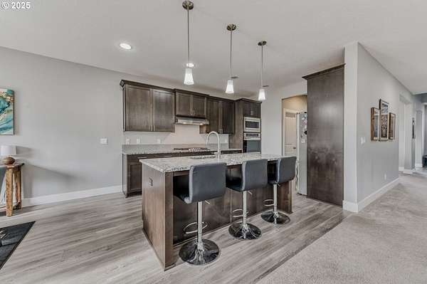 - Cooktop, Dishwasher, Disposal, Double Oven, Free Standing Refrigerator, Gas Appliances, Island, Pantry, Range Hood, Solid Surface Countertop, Stainless Steel Appliance