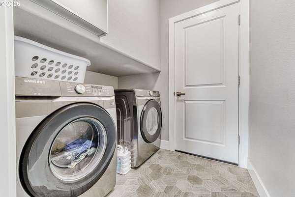 - Laundry, Luxury Vinyl Tile, Soaking Tub, Wallto Wall Carpet, Washer Dryer