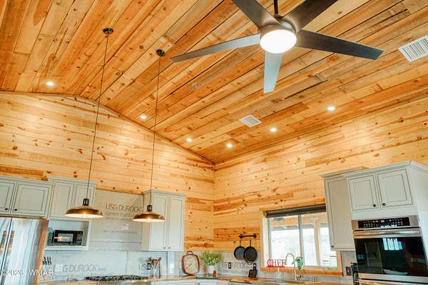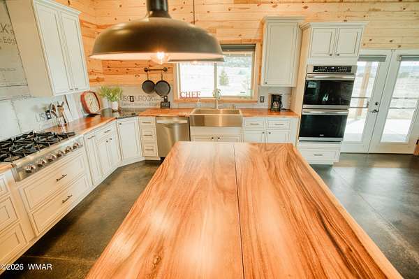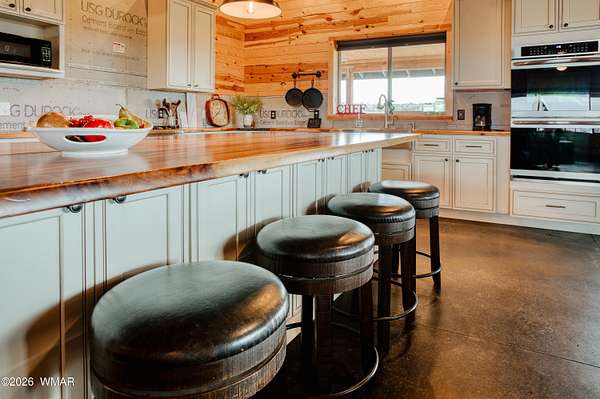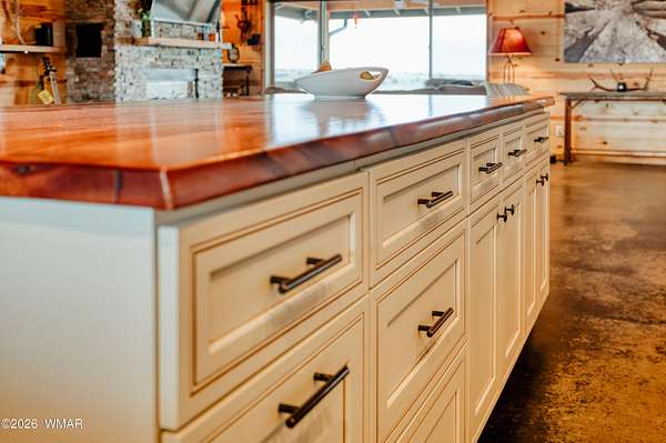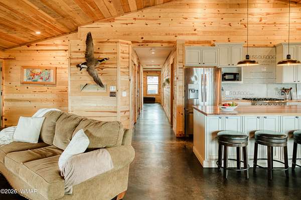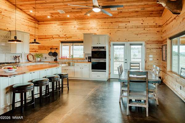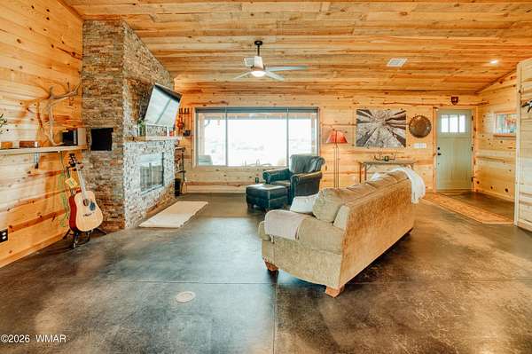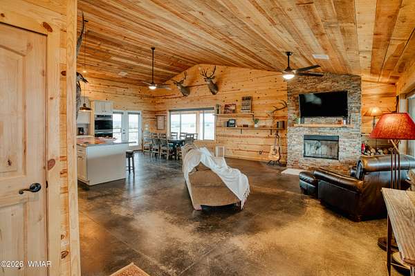 Phenomenal Hilltop Home | White Mountains, Arizona Welcome to your private mountain home in the wide open spaces of the White Mountains of Arizona-where endless skies meet unspoiled wilderness and every sunrise feels like it was painted just for you. Perched on over 2 acres, this exceptional property captures true 360-degree panoramic views. Backing to a single 1,300-acre parcel and expansive open land beyond, your sense of privacy, space, and freedom is unmatched. With only one parcel separating you from the Sitgreaves National Forest, adventure quite literally begins at your doorstep. A Home Designed for Mountain Living An authentic Australian wraparound porch embraces the home, inviting you to relax, entertain, and soak in sweeping vistas from every angle Step inside to discover craftsmanship and warmth throughout: " Solid wood planked walls " Stained and perfectly polished concrete floors " Soaring vaulted ceilings " Panoramic views framed by every window " Stunning stacked stone fireplace anchoring the living space This home blends rustic with refined comfort. Gourmet Kitchen & Thoughtful Finishes The heart of the home is a true gourmet kitchen, featuring: " Glazed antique cabinetry " Generous prep and storage space " Open design ideal for entertaining Whether hosting guests or enjoying a quiet evening in, this kitchen rises to every occasion. Exceptional Functionality The generous 2+ car heated garage offers more than just parkingit includes indoor shop space perfect for hobbies, projects, or additional storage. Designed for year-round usability, it's ideal for mountain living. Outdoor Living at Its Best The grounds are naturally landscaped and ready to thrive: " Raised bed garden with drip irrigation system " Greening initiative with 16 developing trees in 5 varieties " Expansive open space backing a 1,300-acre parcel Here, you'll experience unmatched peace, star-filled skies, and room to breathe. This is more than a home it's a lifestyle. A place where wilderness, craftsmanship, and comfort come together in perfect harmony.