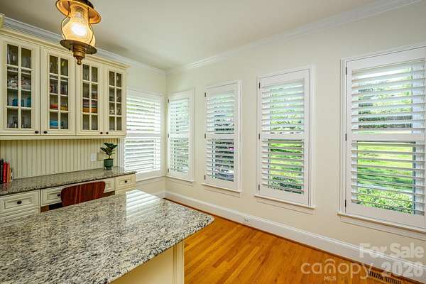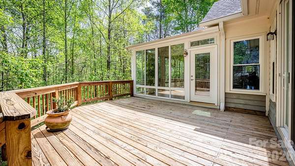 Welcome to this beautifully maintained ranch home on nearly 2 acres in one of Davidson's most sought-after neighborhoods, where custom homes and spacious lots create a distinctive setting. Just minutes from downtown Davidson, this property offers the uncommon combination of single-story living, privacy, and a serene natural backdrop, with mature trees and conserved land behind the home. Inside, generous living and dining spaces create an inviting flow that is well suited for both everyday living and entertaining. The kitchen is thoughtfully appointed with granite countertops, a center island, stainless steel appliances, a built-in desk, and a breakfast nook. Just beyond the living area, the sunroom is filled with natural light and offers peaceful views of the backyard and surrounding trees. The spacious primary suite is a true retreat, featuring multiple windows, a skylight, and glass doors that open directly to the deck. The primary bath includes dual vanities, walk-in shower, whirlpool tub, and access to a large walk-in closet. A split-bedroom floor plan places two generously sized secondary bedrooms on the opposite side of the home, offering privacy and flexibility for family or guests. Outdoor living is equally appealing, with a large deck overlooking the private backyard and tranquil wooded surroundings-an ideal place to relax, entertain, or simply enjoy the setting. *RECENT UPDATES include new interior paint throughout the living areas, kitchen, and bedrooms, including ceilings (March 2026); new dishwasher (March 2026); rebuilt front porch and new sidewalk (June 2022); 20 new windows and 1 new glass door (September 2021); new well pump and deeper well (October 2020); new deck (March 2020); new tankless water heater with recirculation pump and water softener (June 2019); new HVAC, including new returns (July 2017); and new roof & gutters (July 2016). This exceptional neighborhood includes 50 acres of preserved land, stables, and scenic walking/hiking/riding trails along the Rocky River. Schools are highly sought after Davidson Elementary, Bailey, & Hough. A ranch home on nearly 2 acres in Davidson, within Mecklenburg County, is a rare offering and a special opportunity to enjoy space, privacy, and convenience in a highly desirable location. Don't miss the chance to make this lovely property yours! BE SURE TO SEE VIRTUAL TOUR WITH ADDITIONAL PHOTOS AND WALK-THROUGH VIDEO!